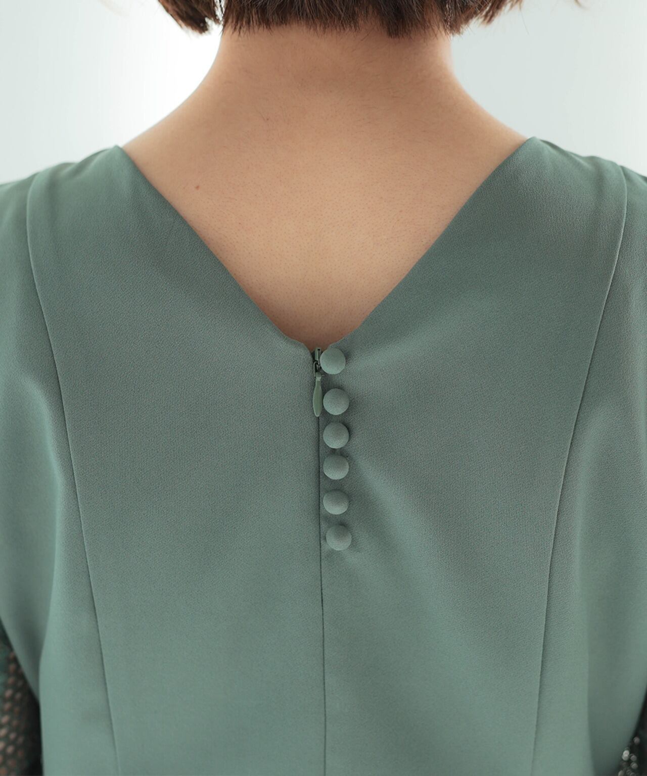 フォーマル感のあるシンプルなデザインにクルミボタンとスリットが入った袖がポイントです。