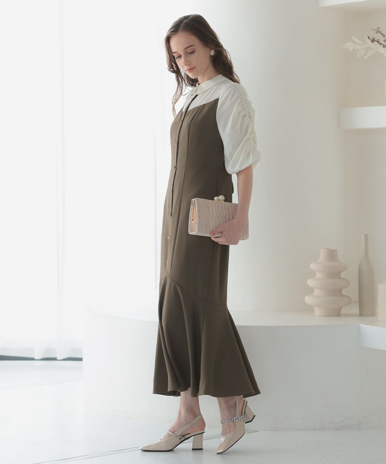 パッと目をひく魅力的なマーメイドシルエットのロングワンピース。