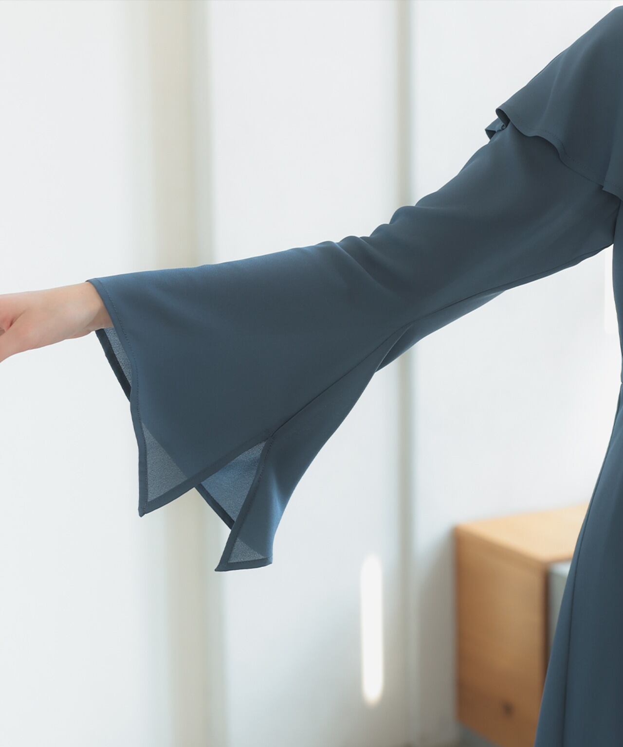 パーティードレス 結婚式 ワンピース ドレス 結婚式ドレス お呼ばれ 20代 30代 ケープ 襟付き オケージョンドレス 袖あり 長袖 フレア パーティドレス ミモレ ケープ襟 ミモレ丈 オケージョン haremode 323222