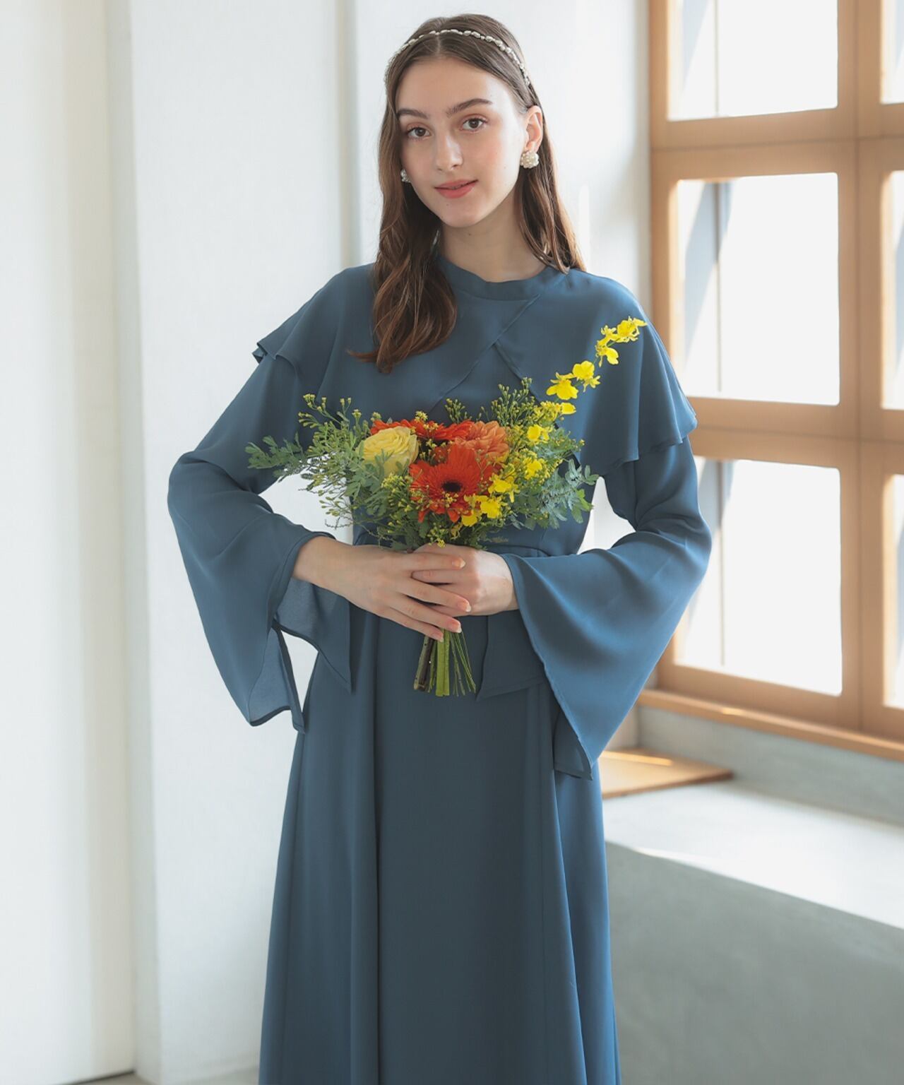 ケープ襟でモダンな雰囲気が楽しめるドレス