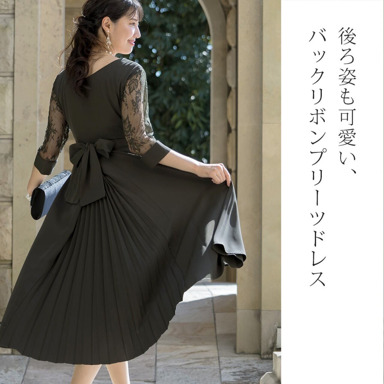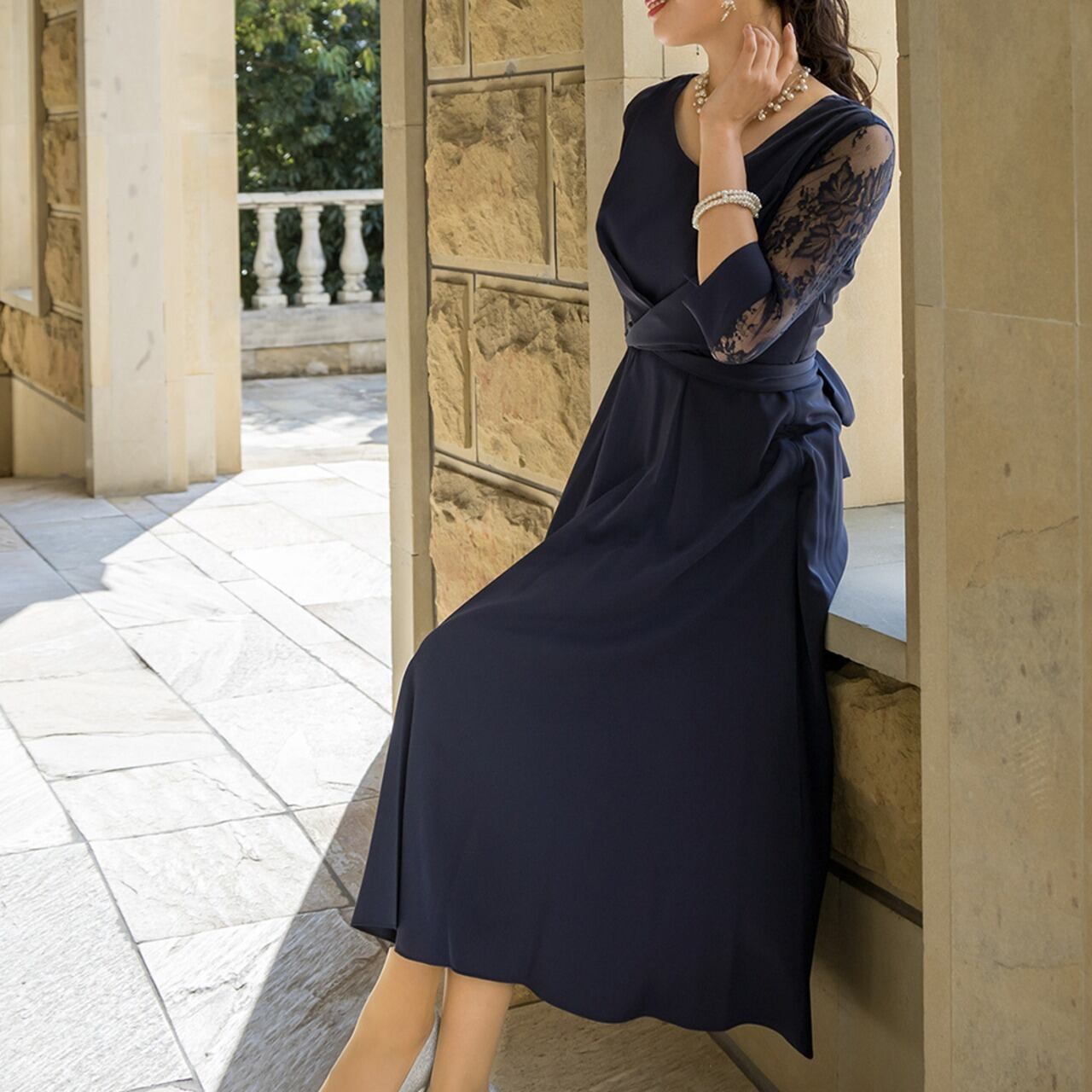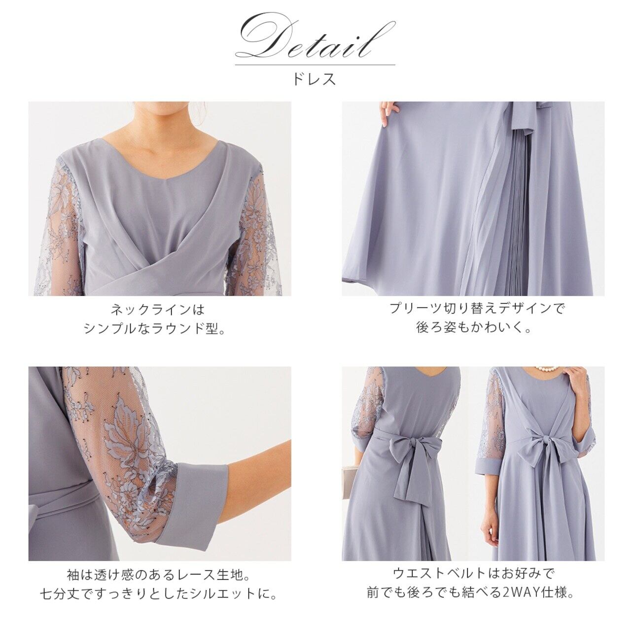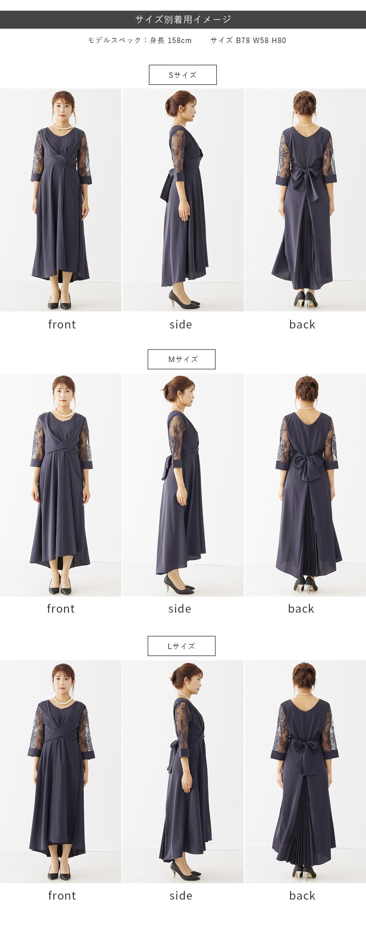パーティードレス 結婚式 ワンピース ドレス ロング丈 袖あり お呼ばれ レースワンピース レース フォーマル 7分袖 エレガント プリーツ フレア ロング フィッシュテール 2次会 披露宴 S M L auni 77000020