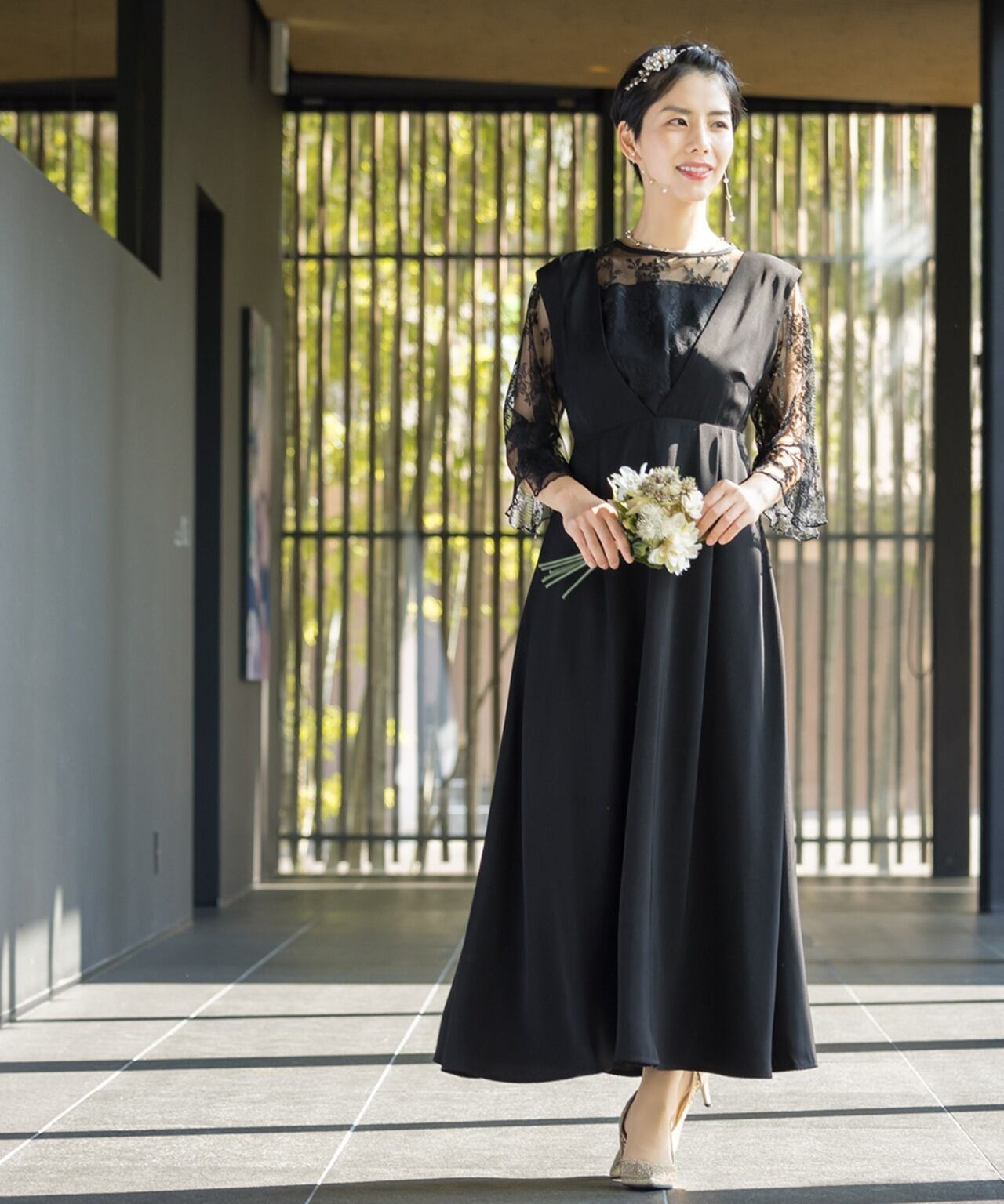 結婚式や二次会はもちろん、1.5次会のやや緩めのコーデにも使いやすいアイテム