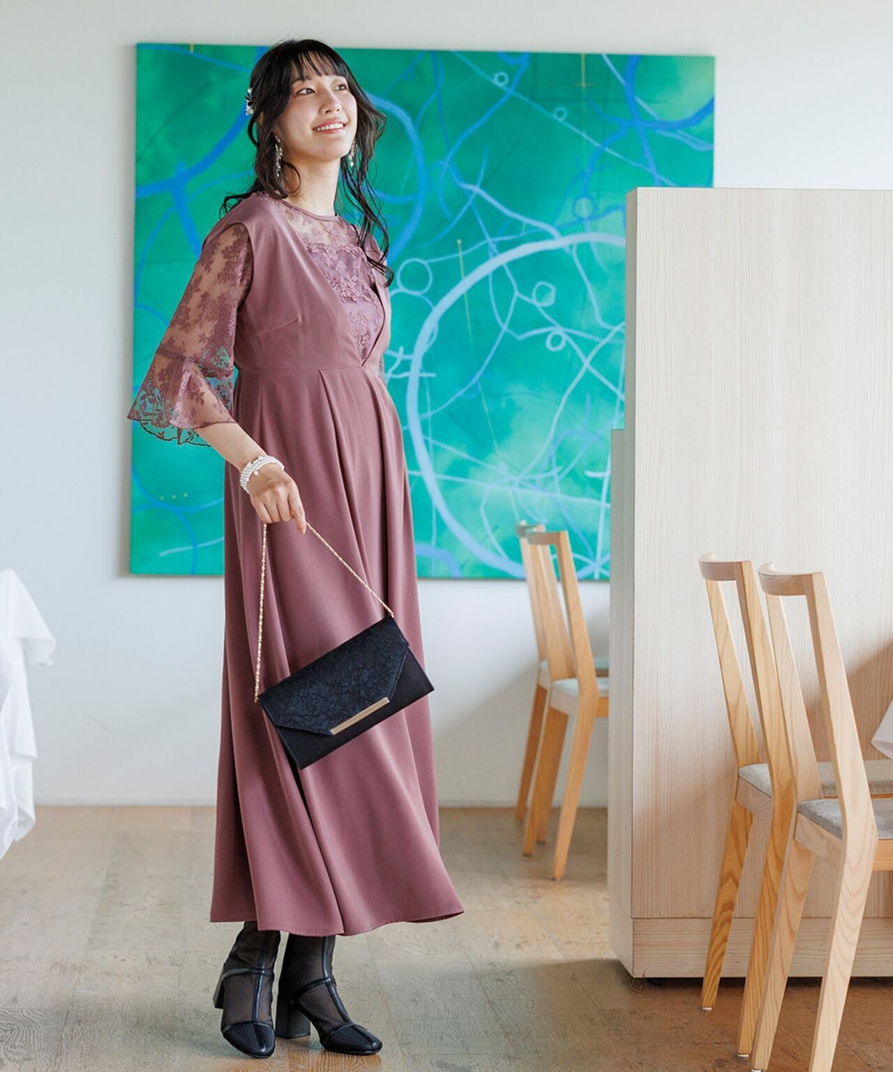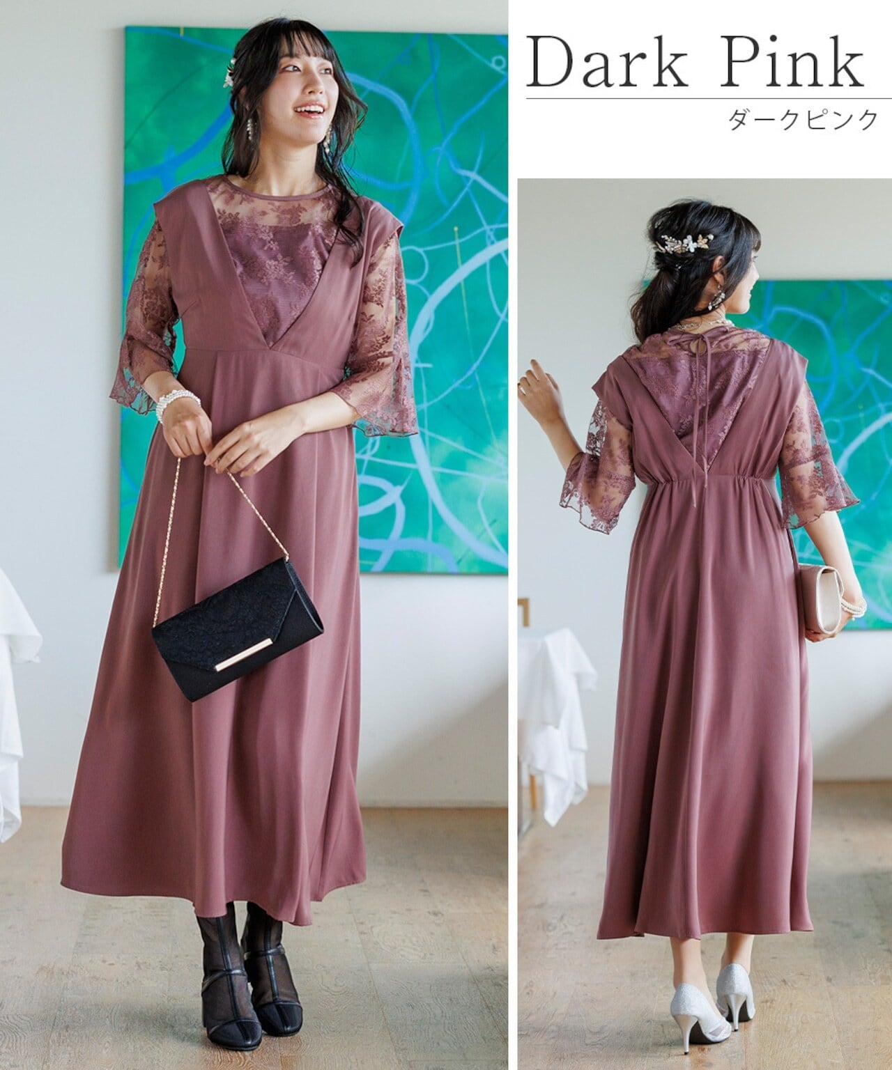 パーティードレス 結婚式 ワンピース 服装 ロング ドレス 即日発送 30代 40代 女性 演奏会 袖あり レディース お呼ばれ フォーマル 試着チケット対象 auni 77000028 OT8ドレス