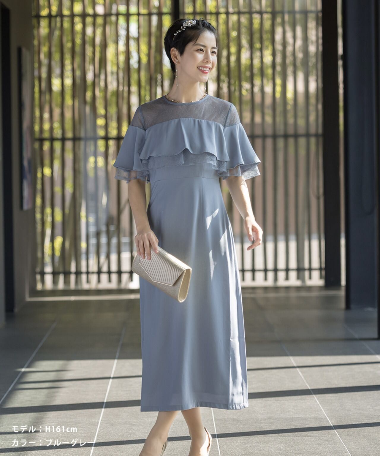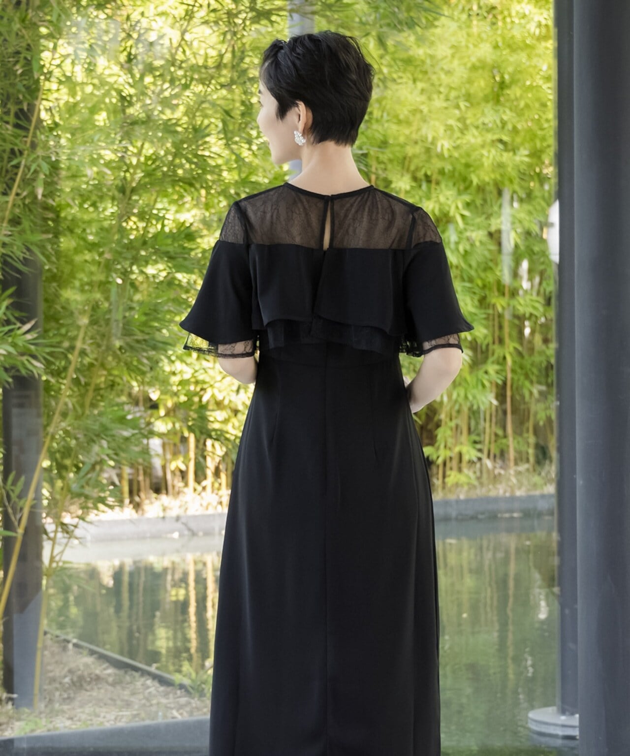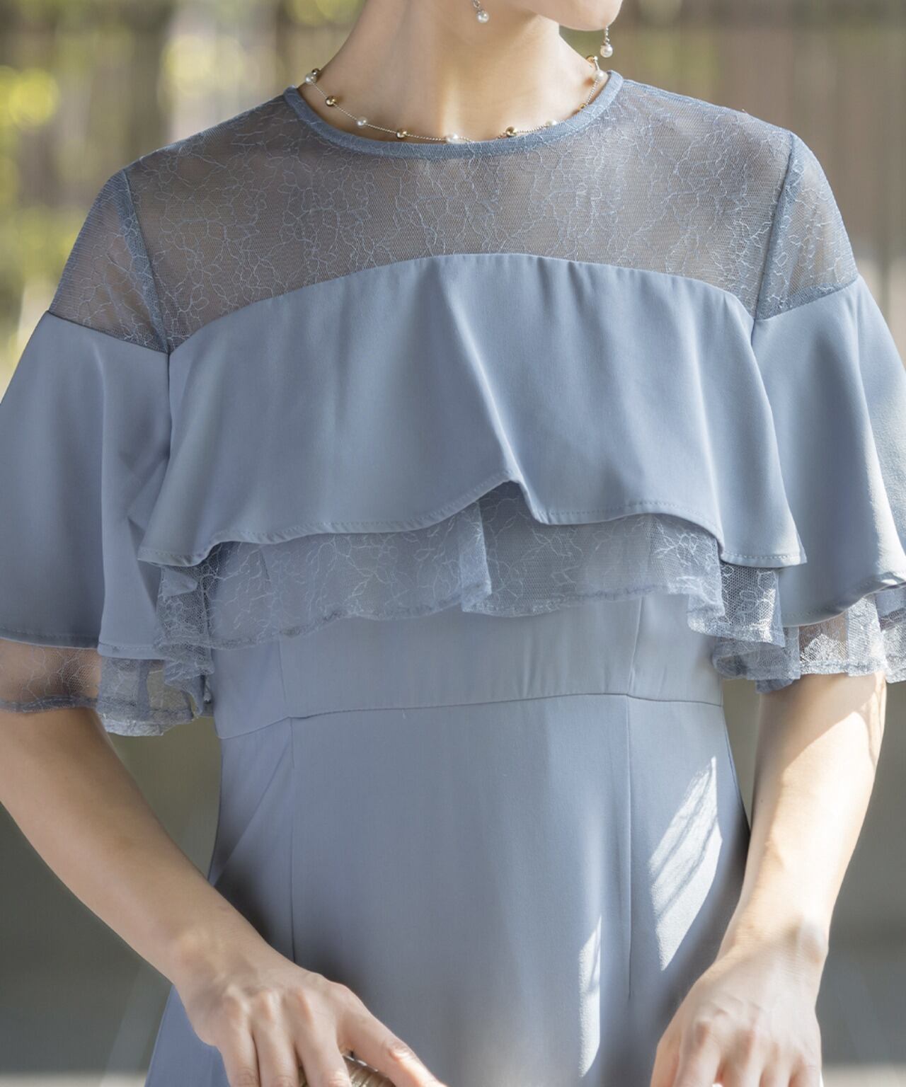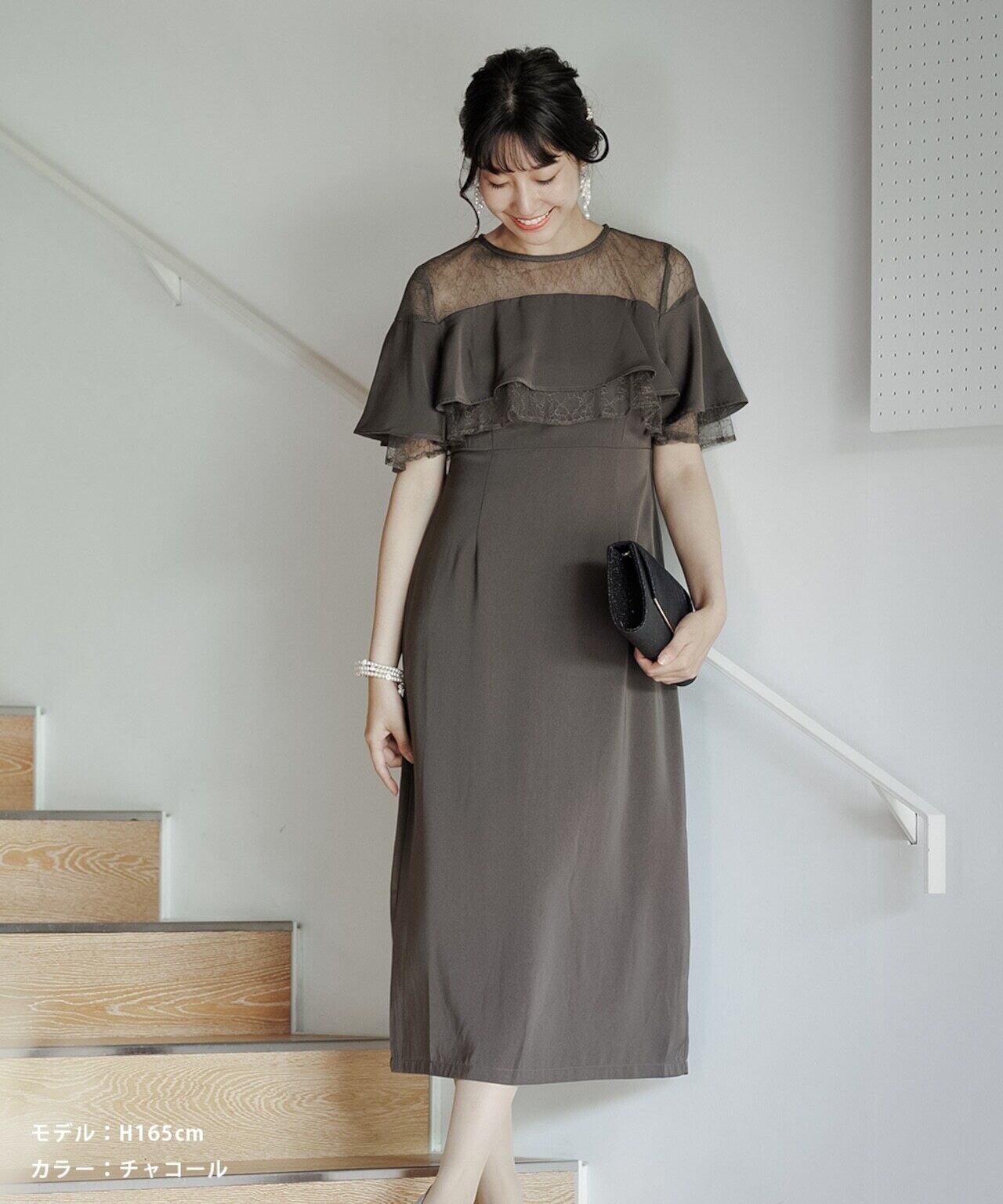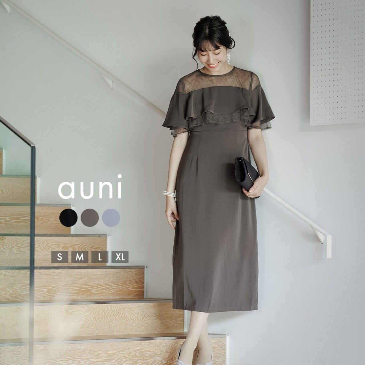 パーティードレス 結婚式 ドレス ロング オケージョンドレス 服装 20代 30代 40代 女性 ワンピース 大きいサイズ フリル シフォン レース ミモレ丈 オケージョン レディース 袖あり 黒 1.5次会 2次会 auni 77000043 OT8ドレス