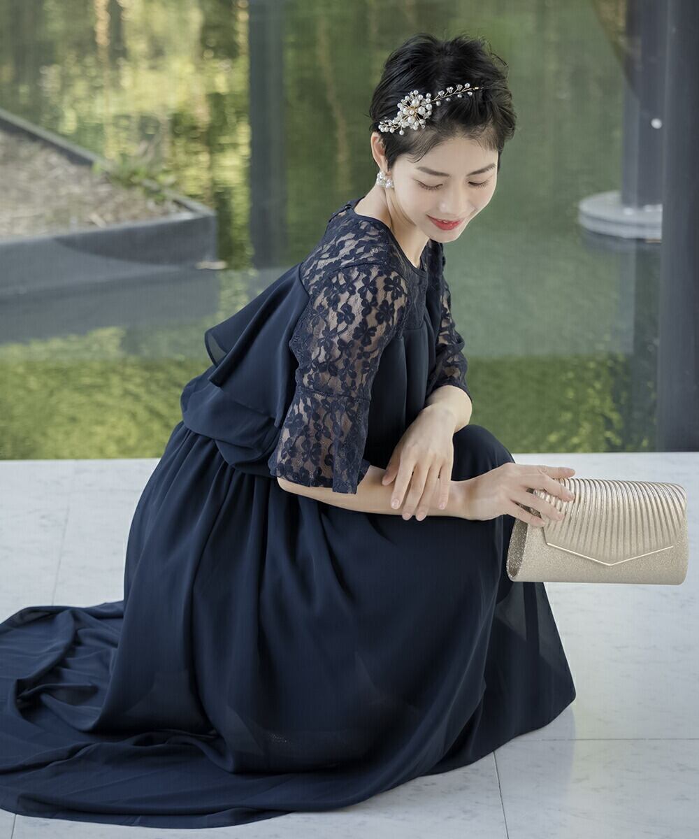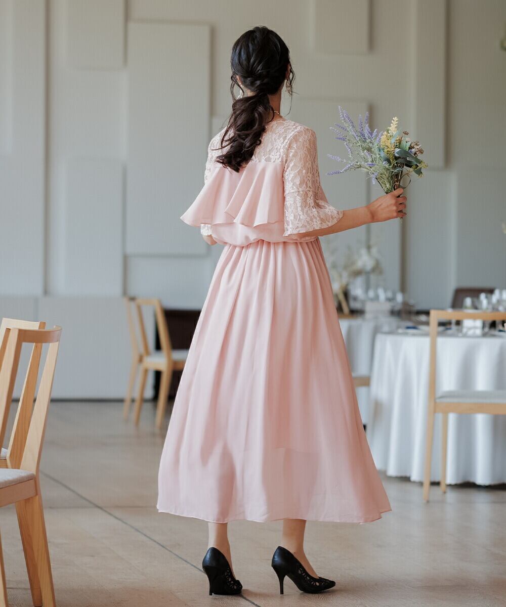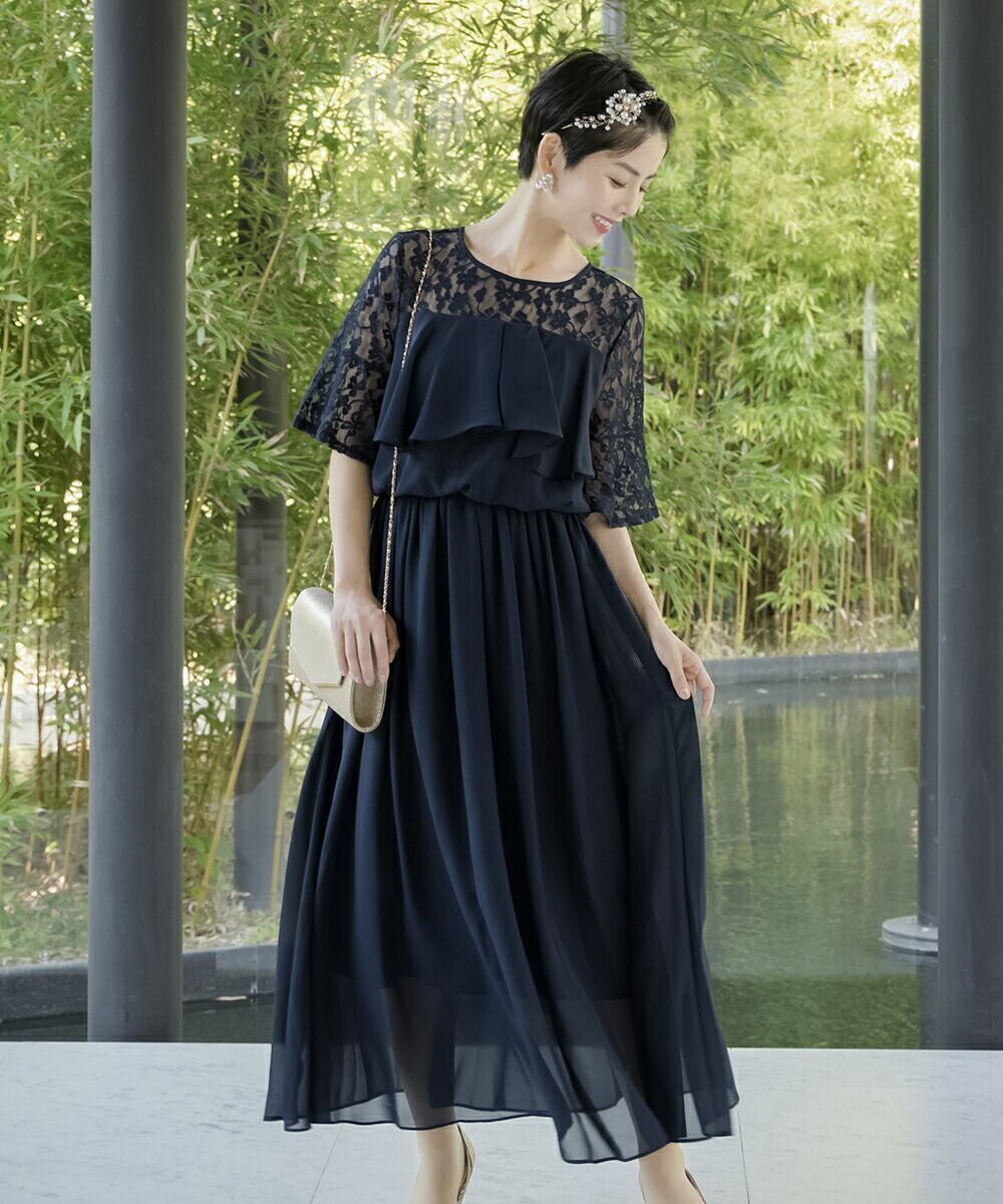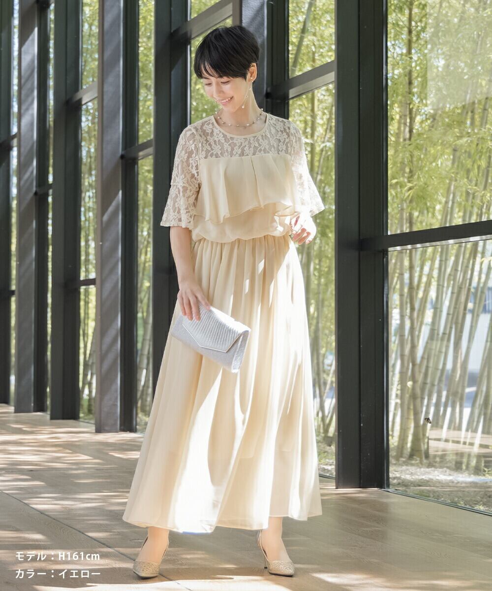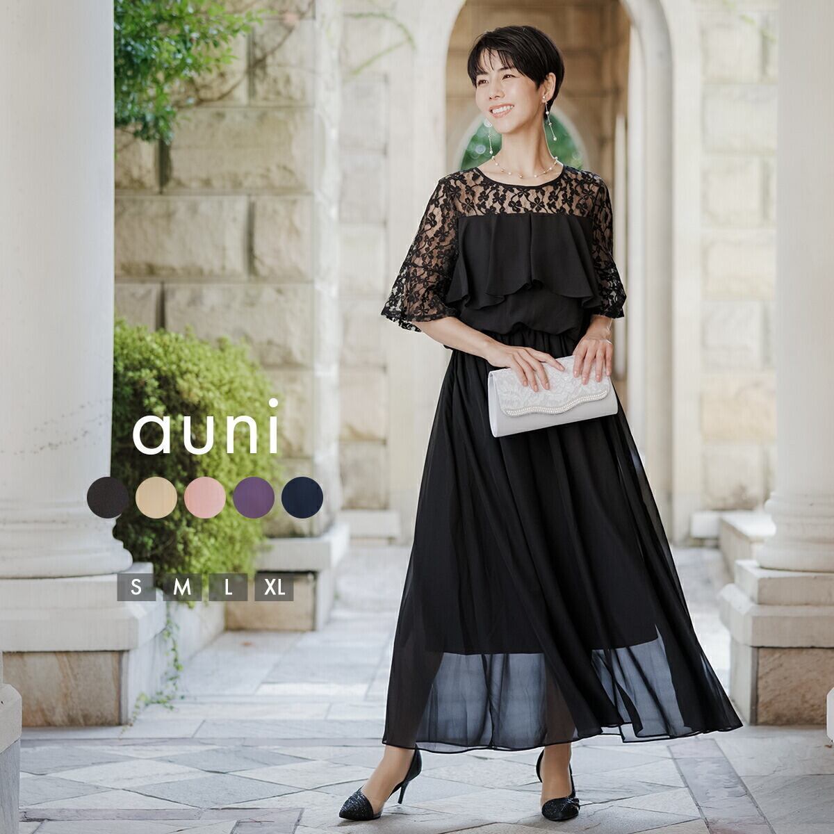 パーティードレス 結婚式 ドレス ロング オケージョンドレス 20代 30代 40代 女性 ワンピース 大きいサイズ フリル シフォン レース マキシ丈 オケージョン レディース 袖あり 黒 1.5次会 2次会 服装 auni J327012 OT8ドレス