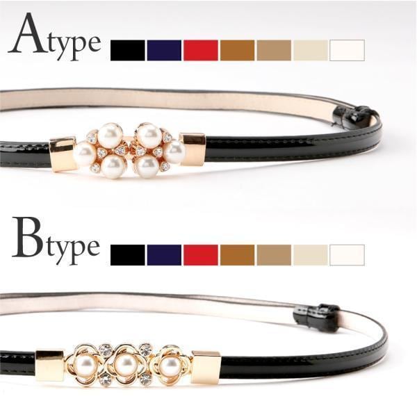 ベルト レディース 結婚式 細ベルト オケージョン お呼ばれ パール ウエストマーク エナメル バックル アクセント フォーマル フックタイプ メール便可 god076