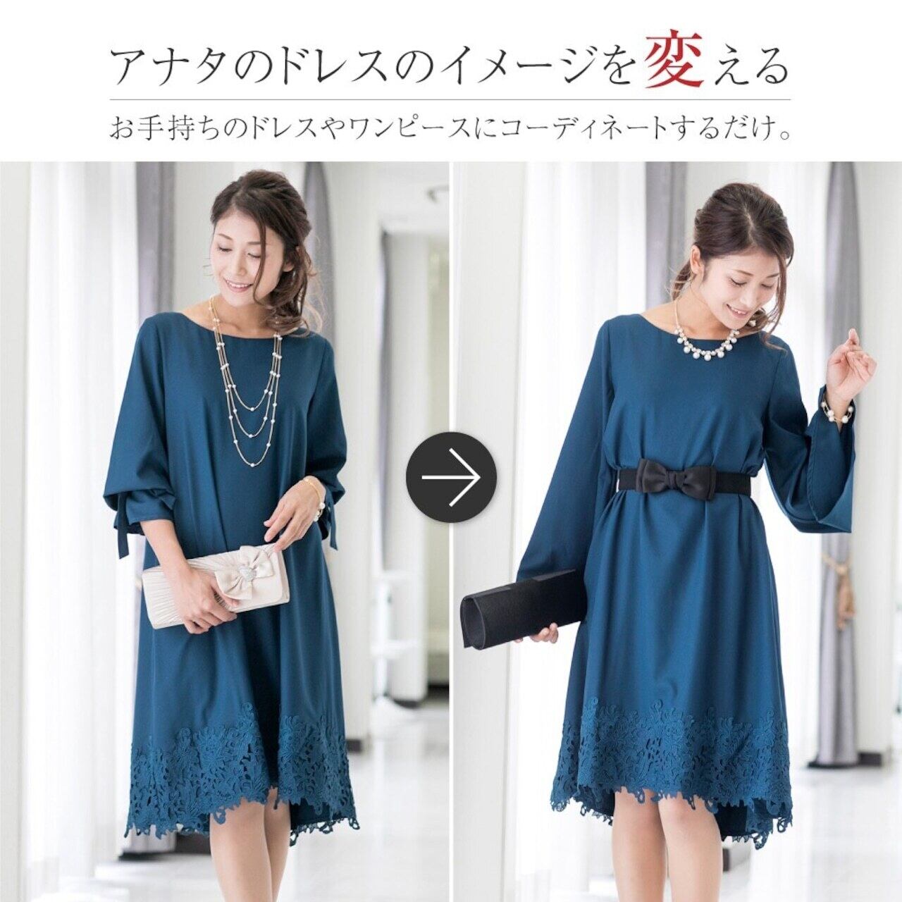 ベルト レディース 太い ゴム リボン おしゃれ かわいい お呼ばれ ウエストマーク 結婚式 パーティ 上品 アクセント フォーマル スナップボタン 黒 紺 auni god057