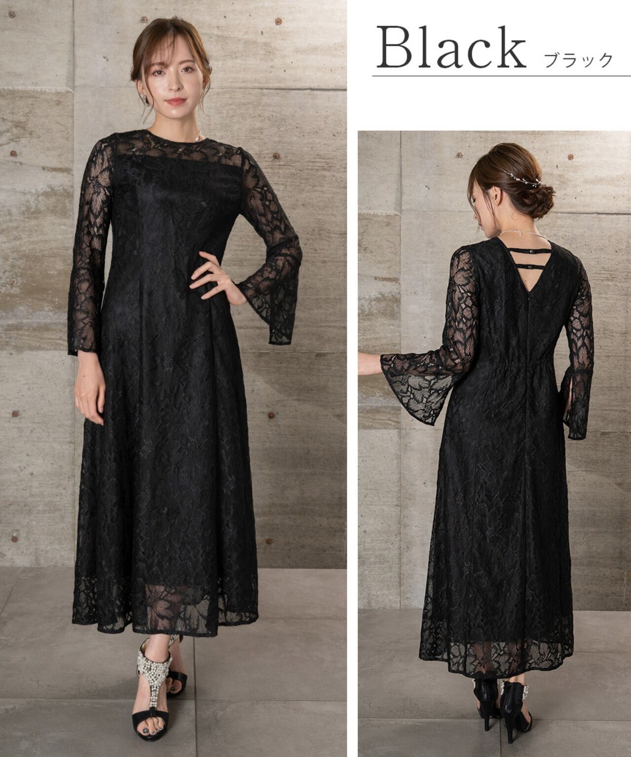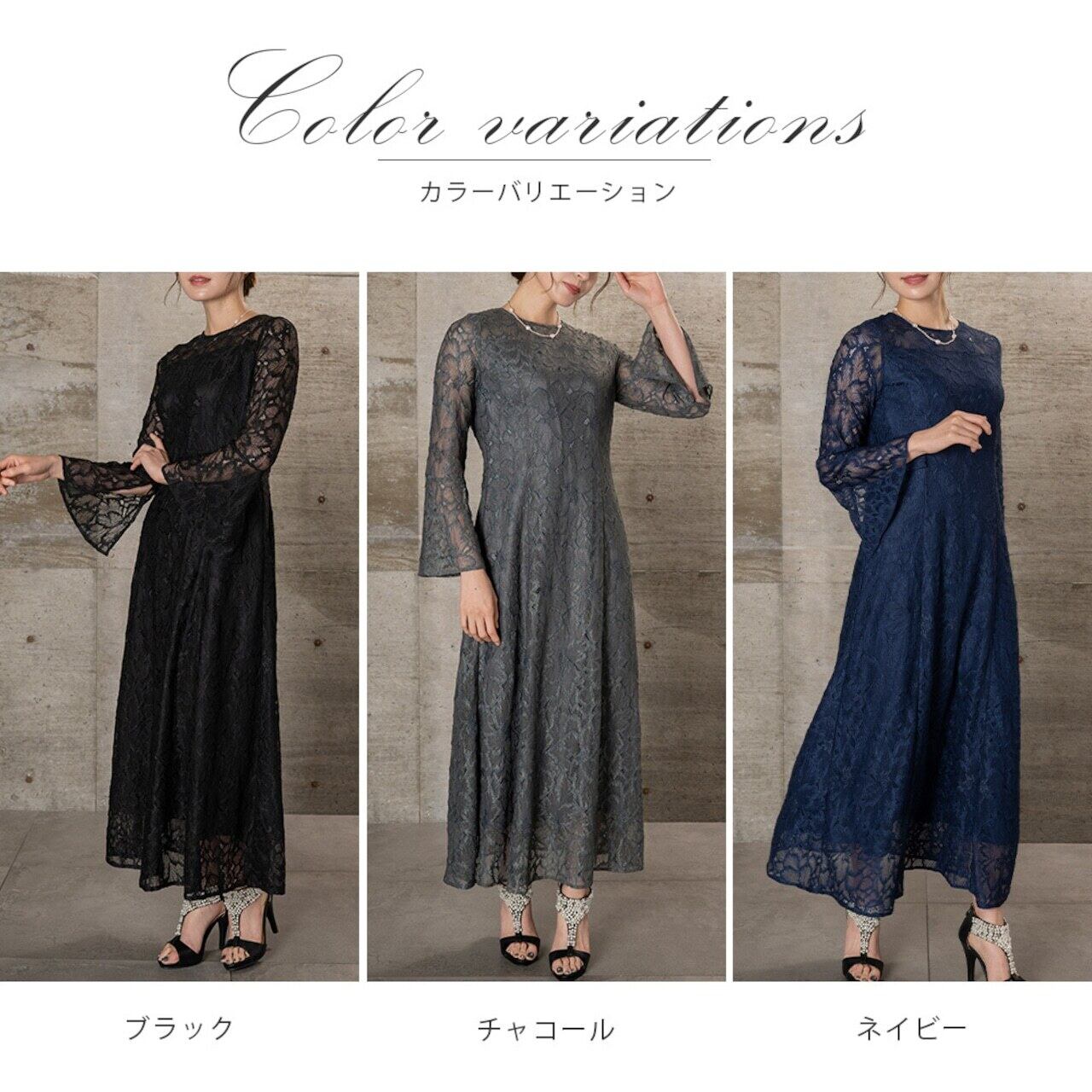 結婚式 ドレス パーティードレス お呼ばれドレス ワンピース オケージョンドレス フォーマルドレス レディース オケージョン 体型カバー お呼ばれ 袖あり 長袖 スリット ロング レース ウエストゴム 黒 ネイビー チャコール グレー UM2780