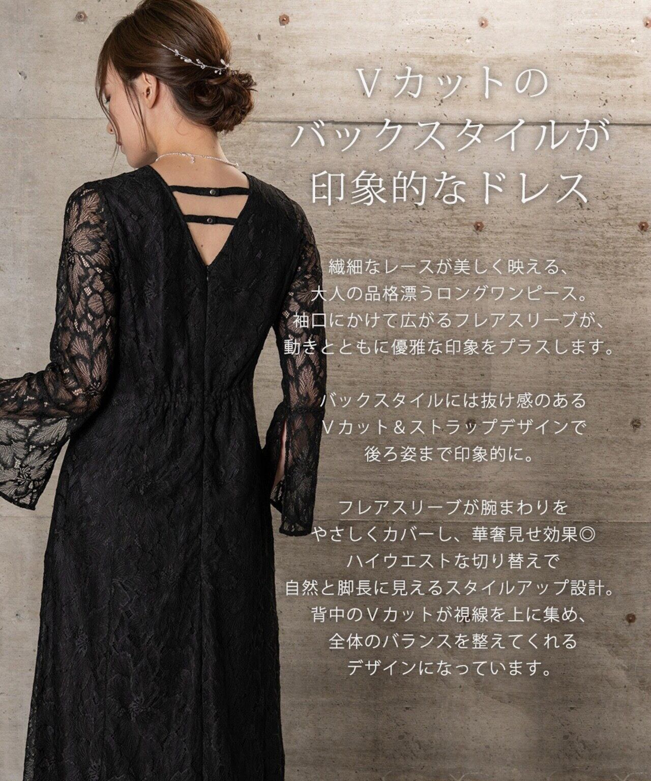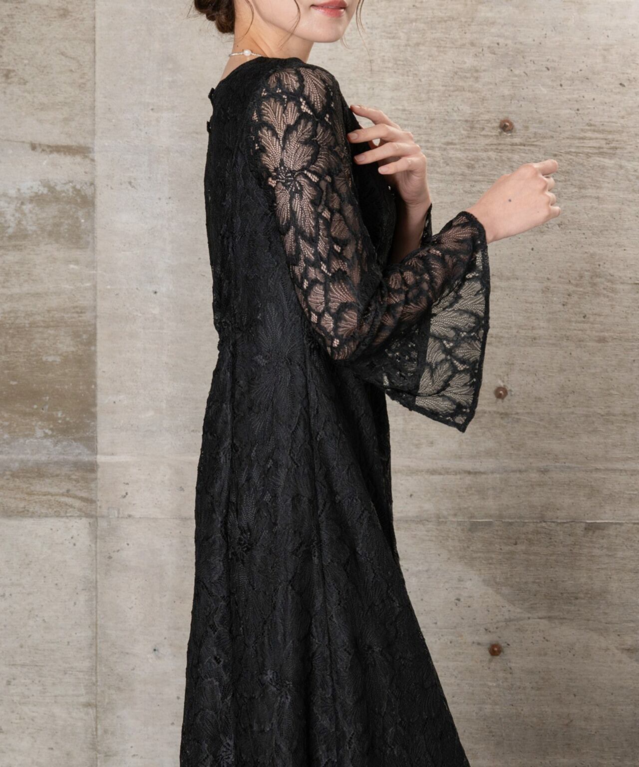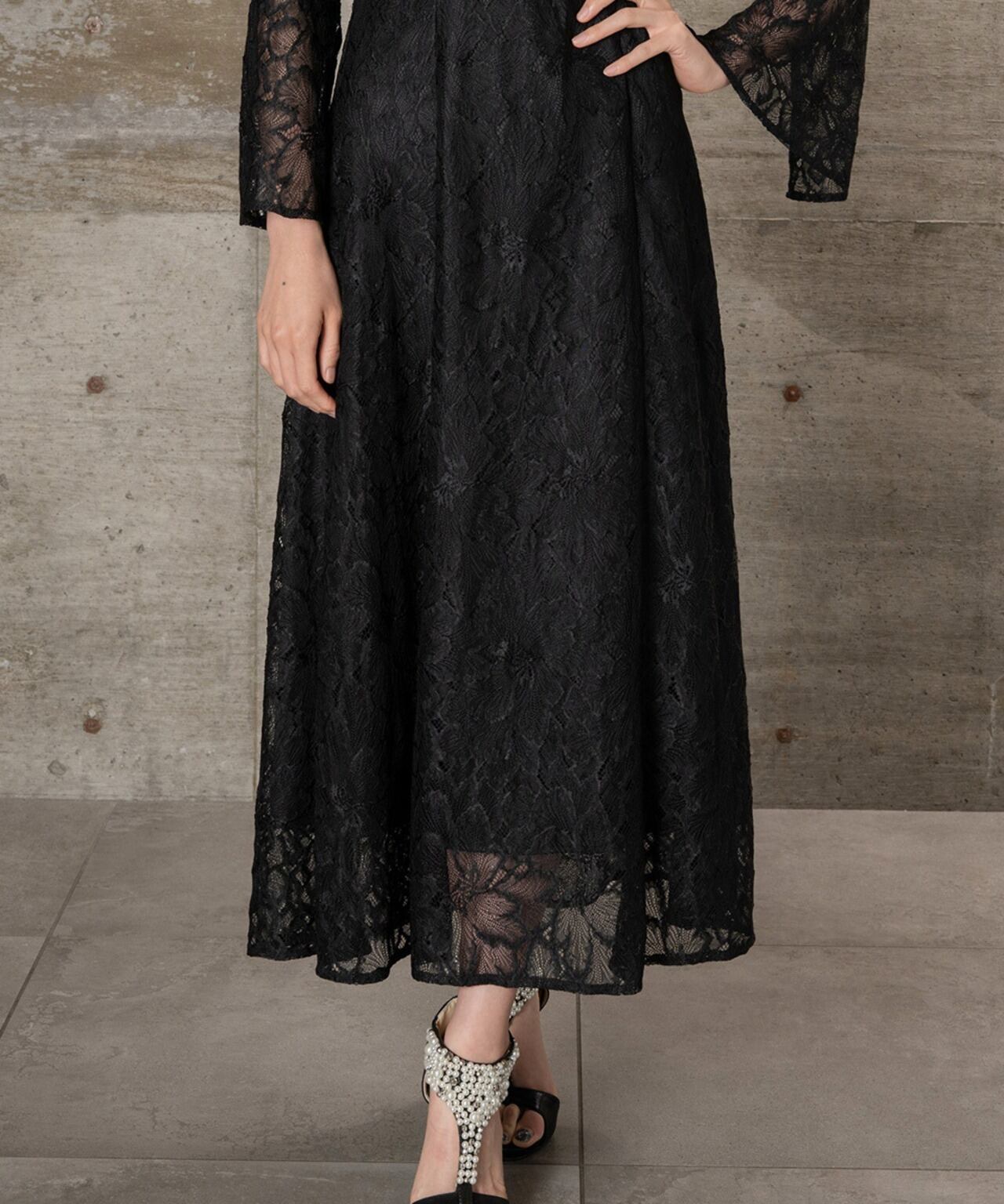 繊細なレースが美しく映える、大人の品格漂うロングワンピース。