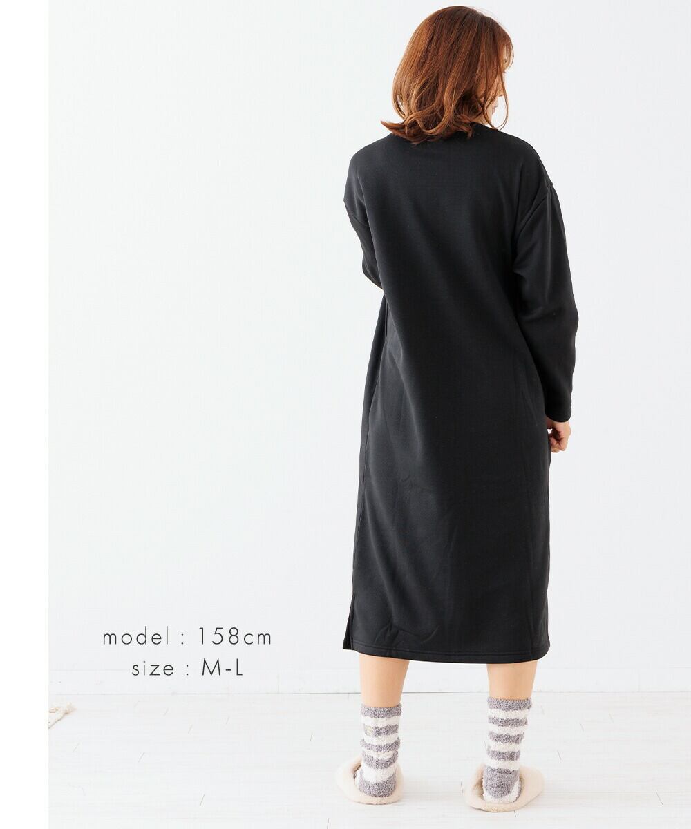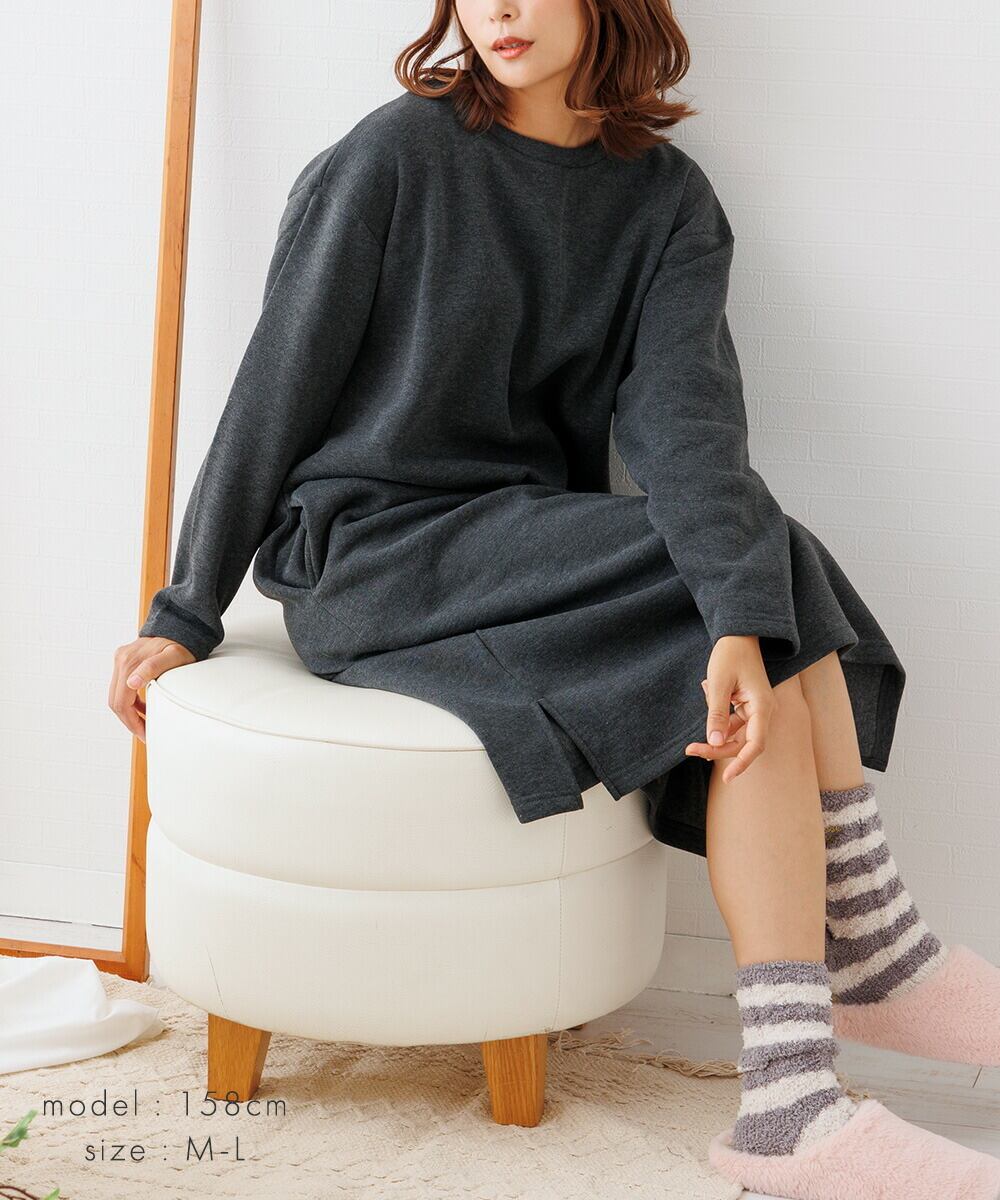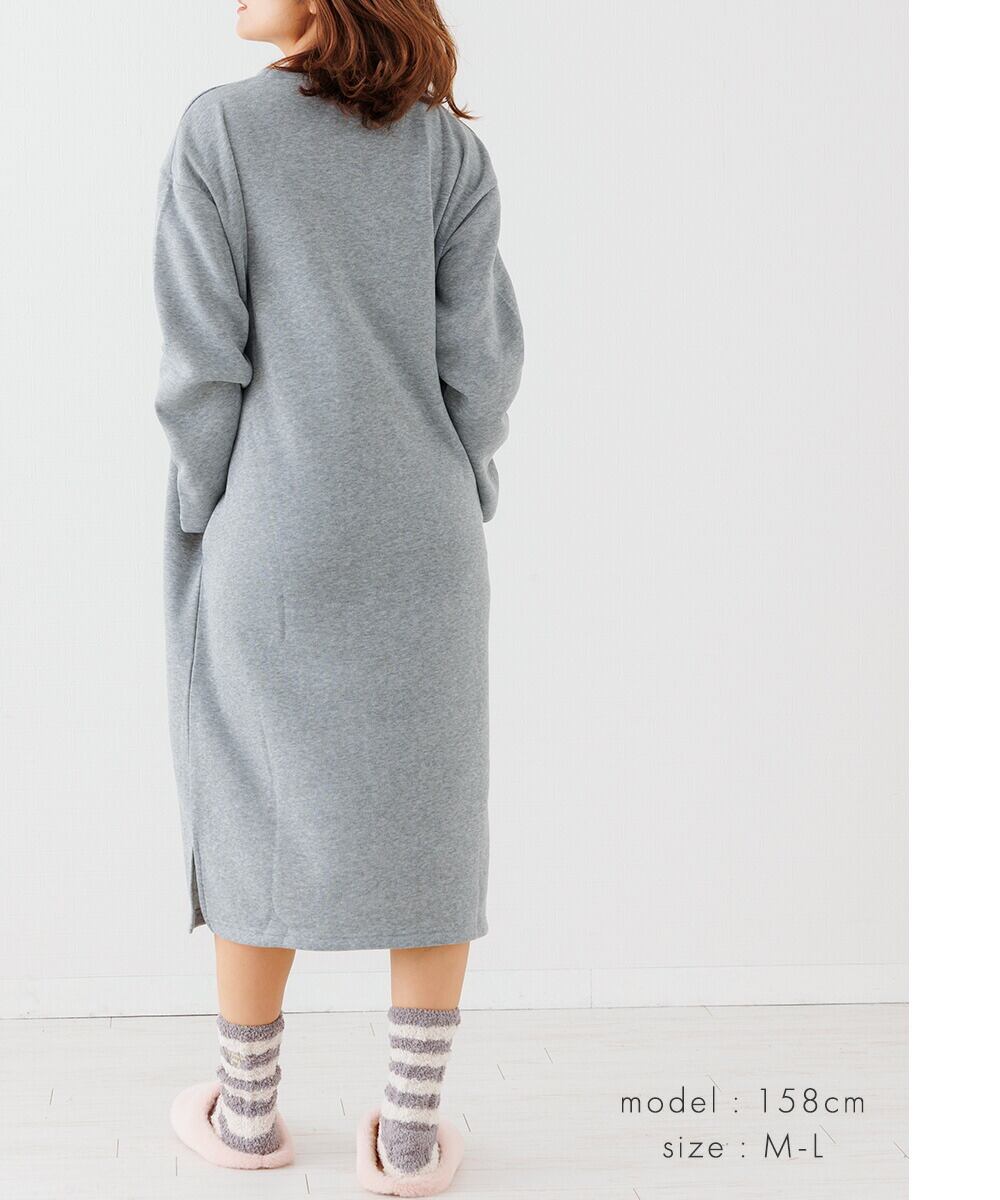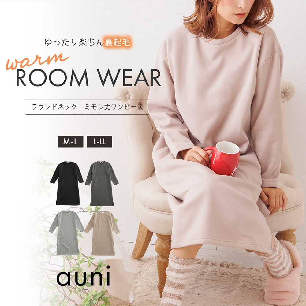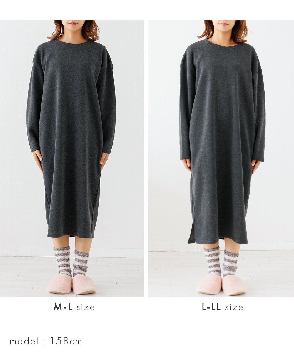 ルームウェア ワンピース レディース 冬 裏起毛 ミモレ丈 パジャマ 秋 冬 秋冬 ワンマイル ミモレ丈ワンピ 定番 ラウンドネック カジュアル シンプル 無地 部屋着 ゆったり 可愛い 楽ちん ゆったり おうち時間 おでかけ bn8302