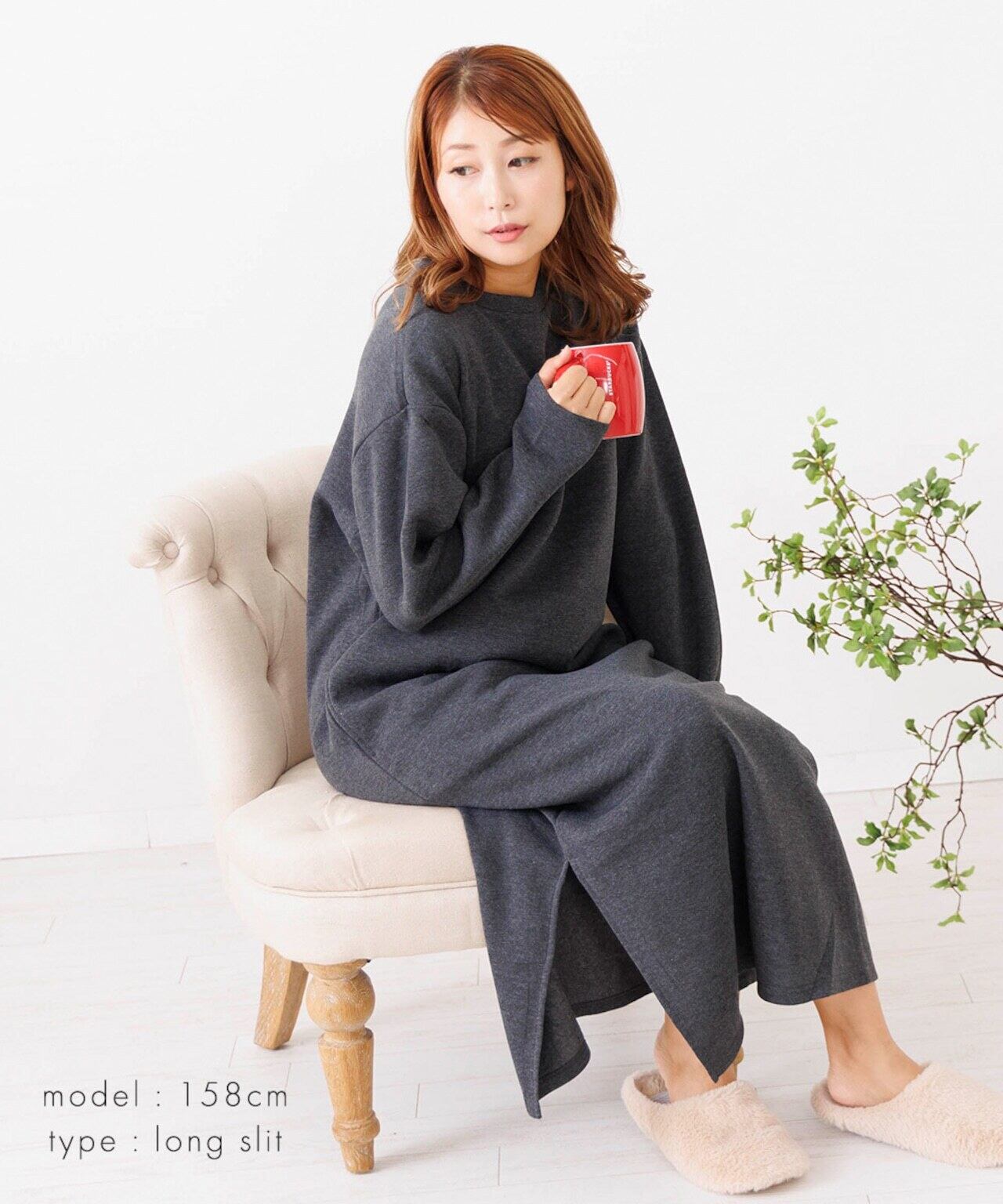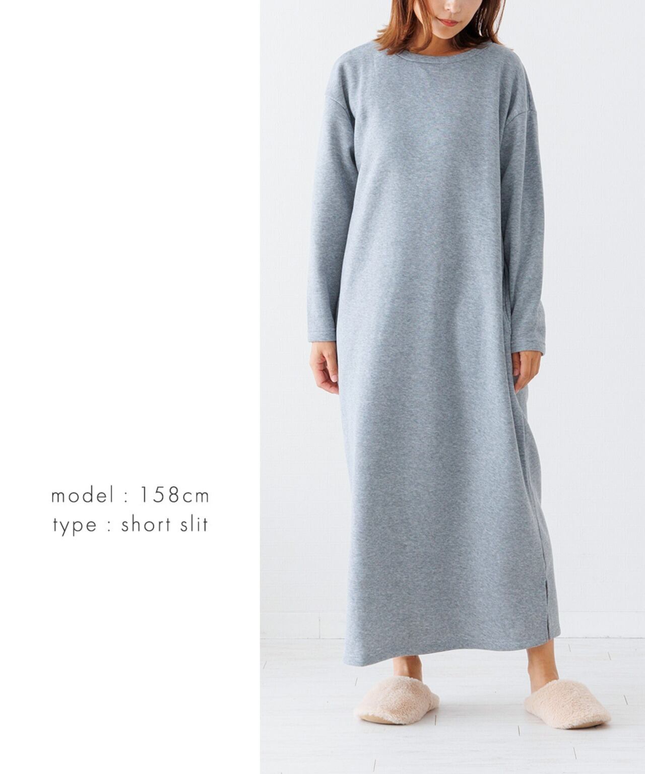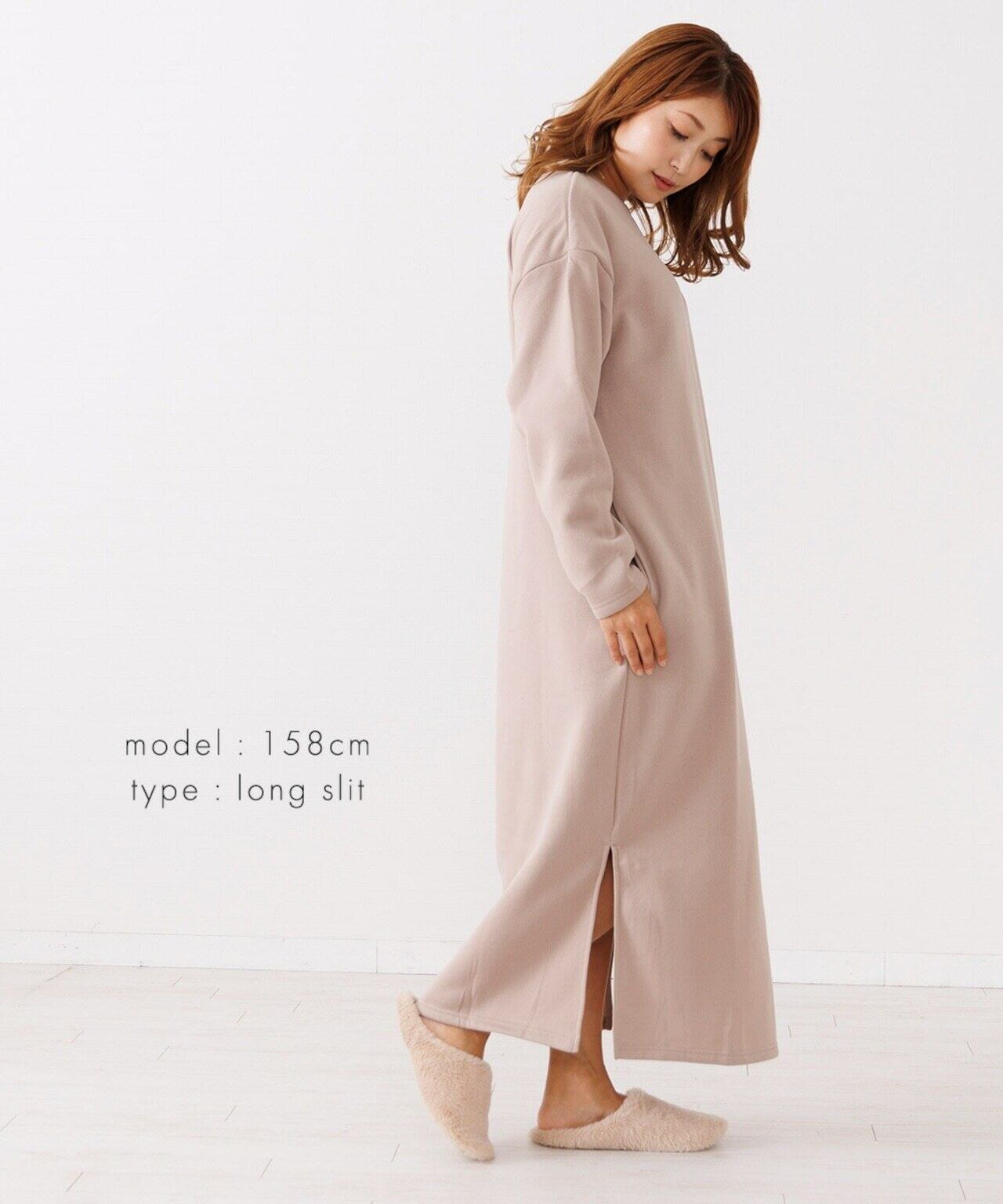 ルームウェア 裏起毛 ワンピース レディース 秋 秋冬 冬 ワンマイル パジャマ スリット マキシ ロング 定番 ラウンドネック カジュアル シンプル 無地 部屋着 ゆったり 可愛い 楽ちん ゆったり すごもり おうち時間 おでかけ bn8301