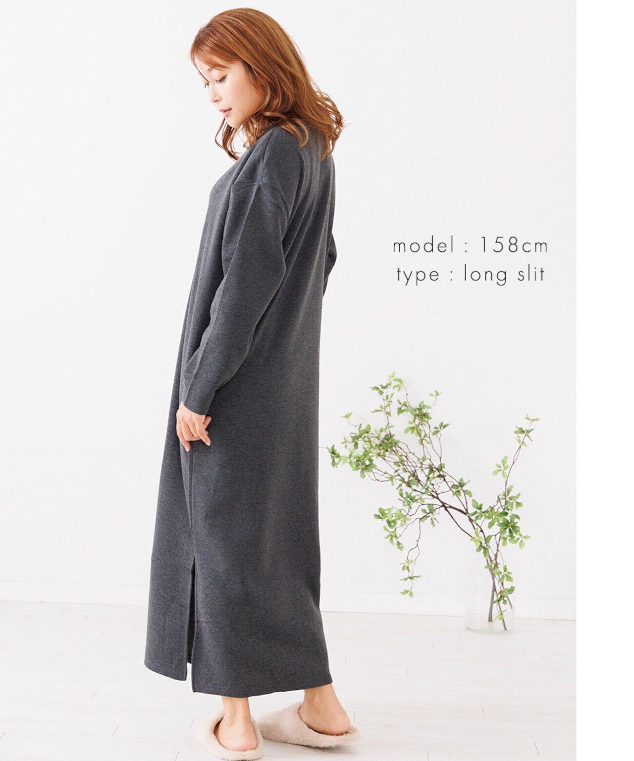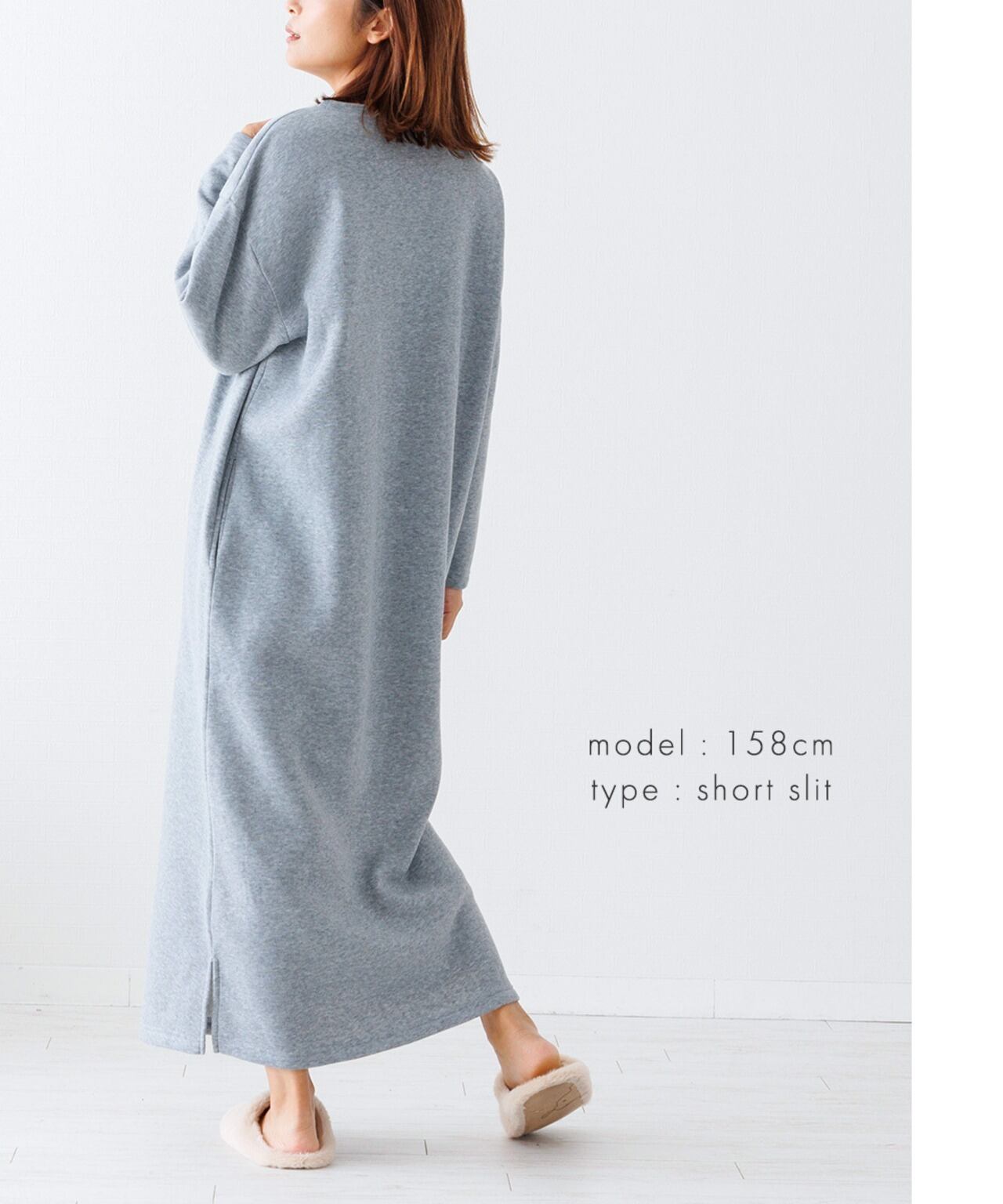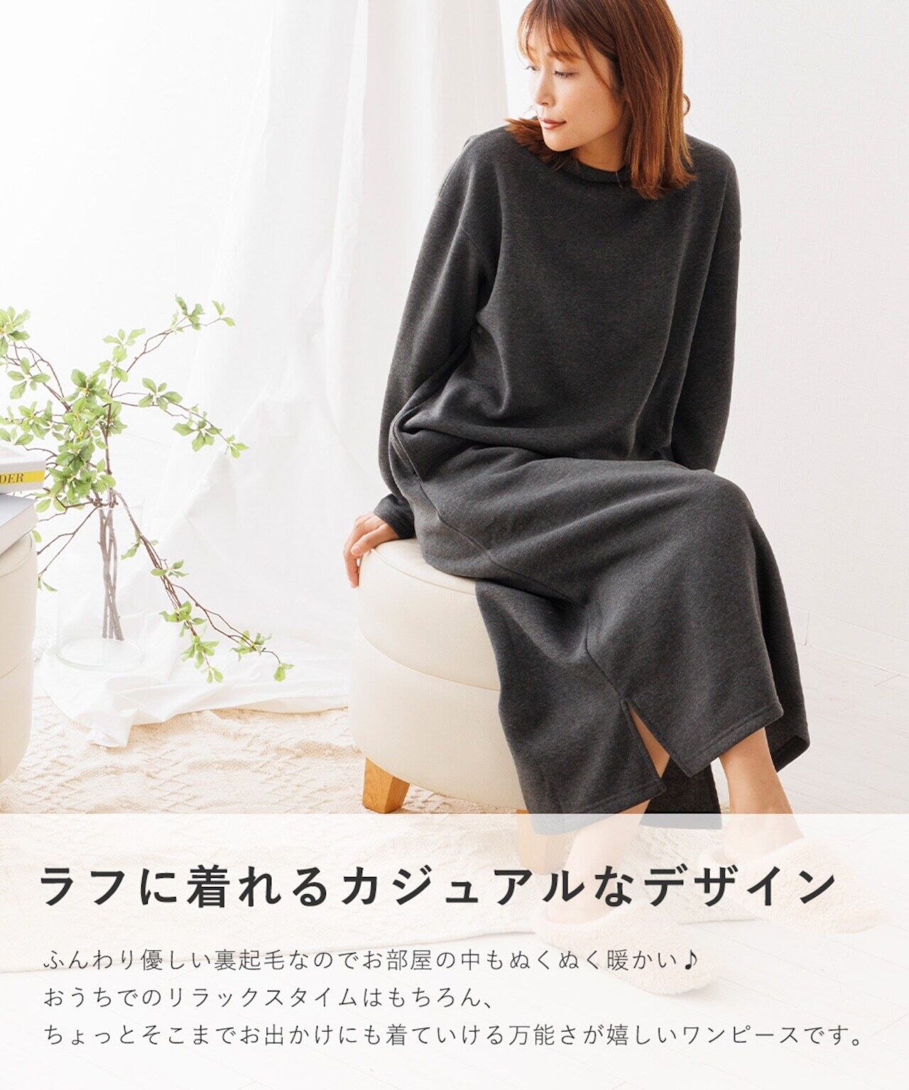 ルームウェア 裏起毛 ワンピース レディース 秋 秋冬 冬 ワンマイル パジャマ スリット マキシ ロング 定番 ラウンドネック カジュアル シンプル 無地 部屋着 ゆったり 可愛い 楽ちん ゆったり すごもり おうち時間 おでかけ bn8301