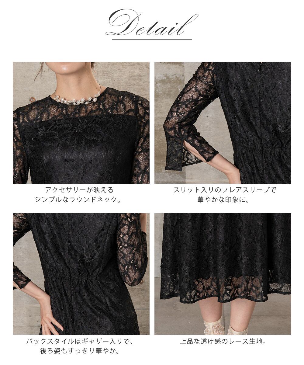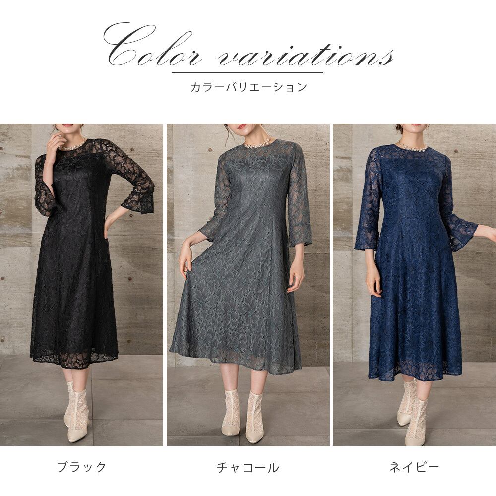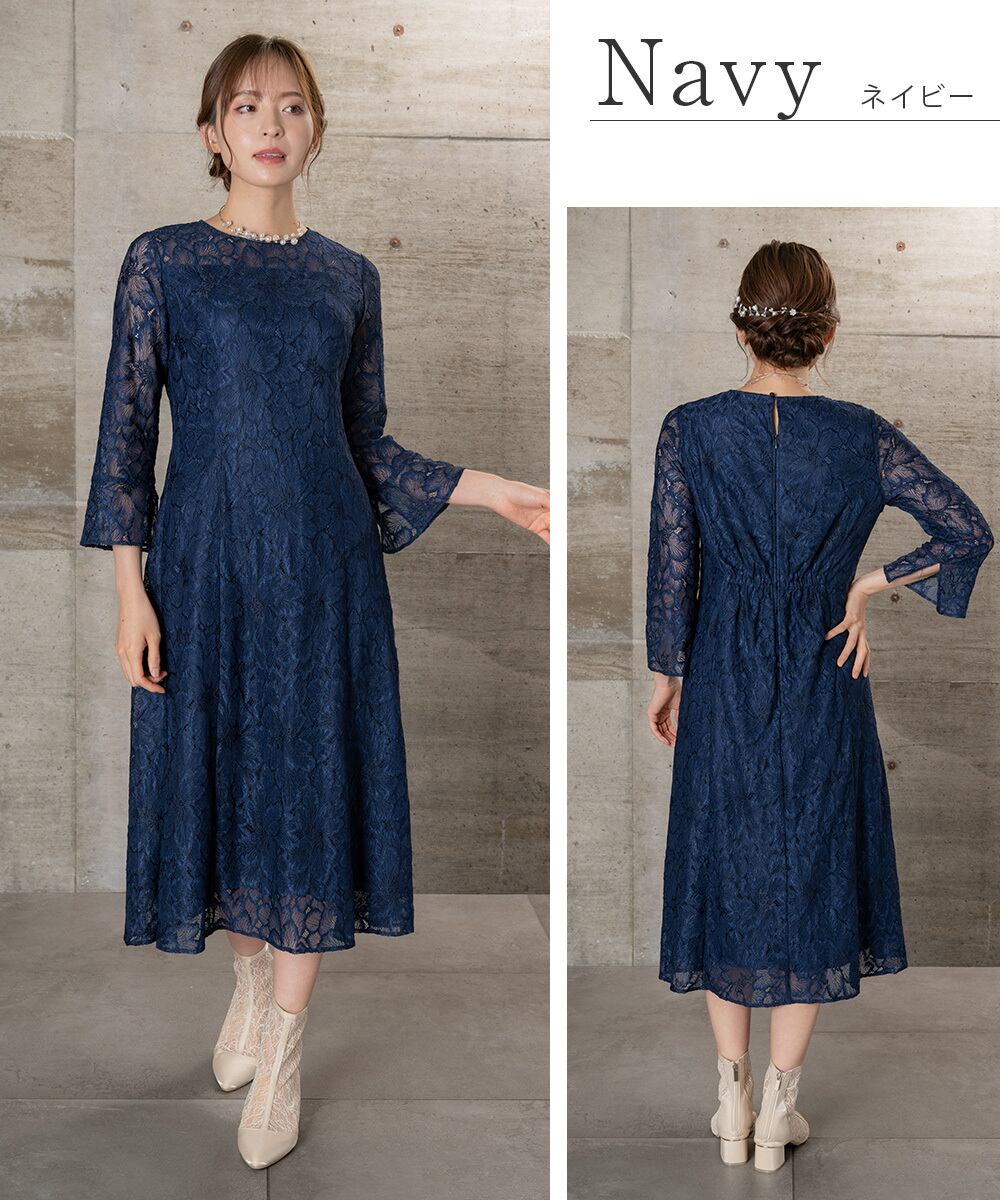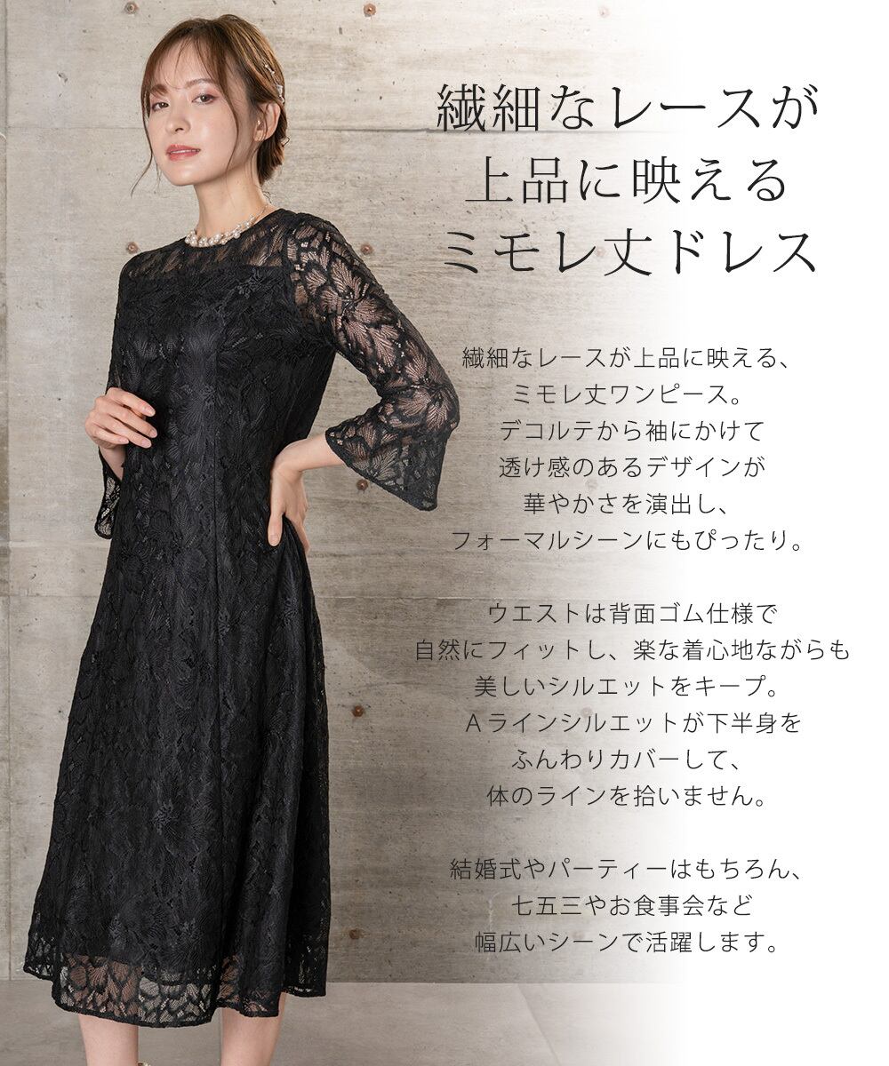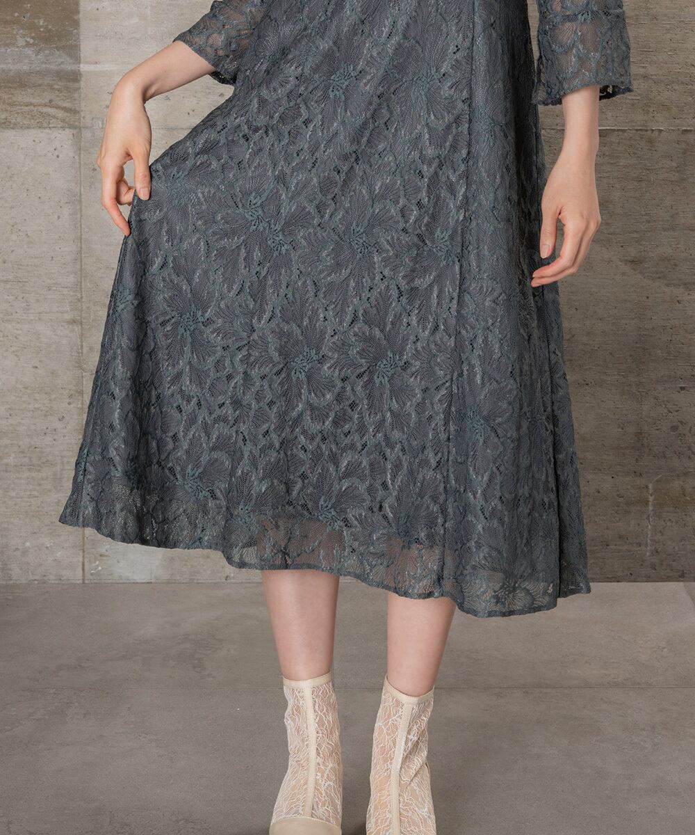 繊細なレースが上品に映える、エレガントなミモレ丈ワンピース。