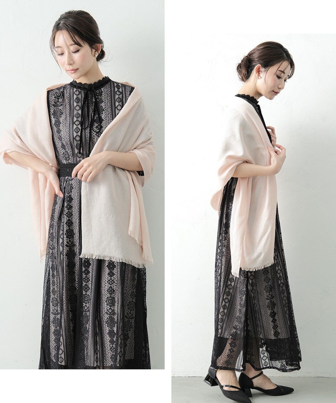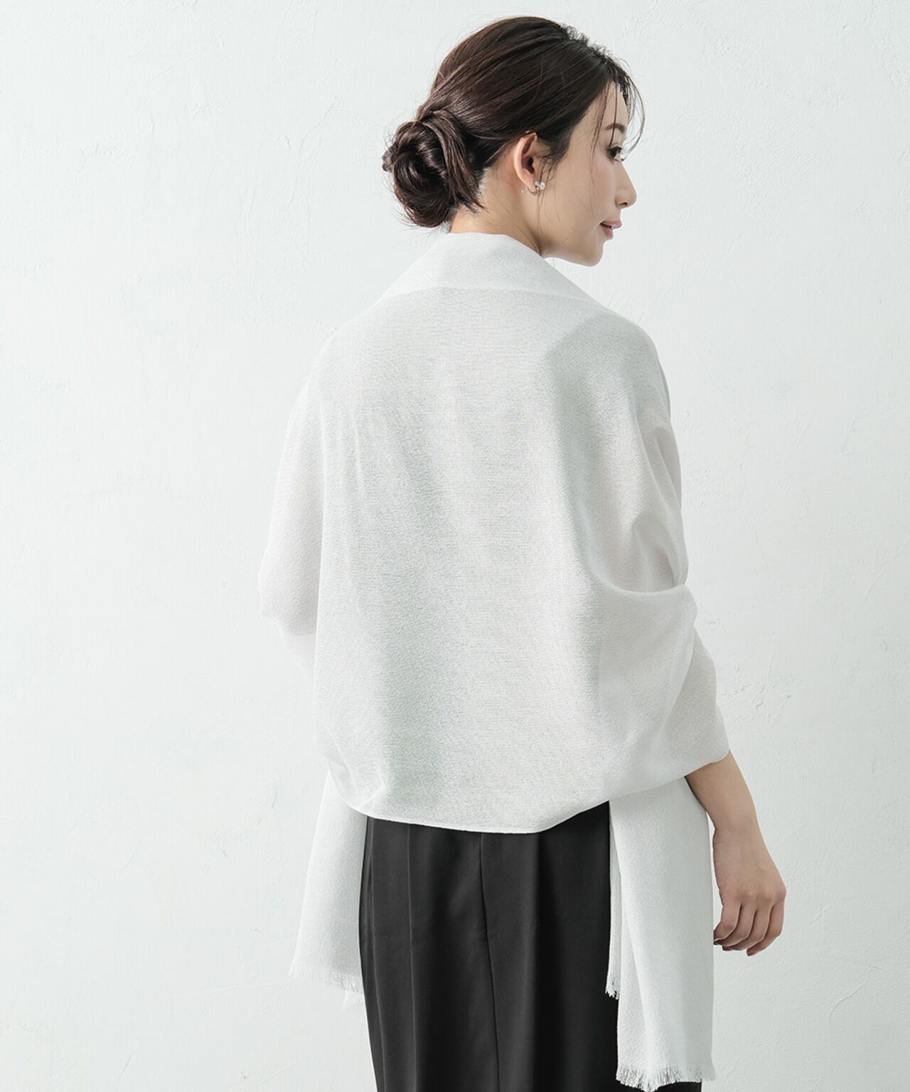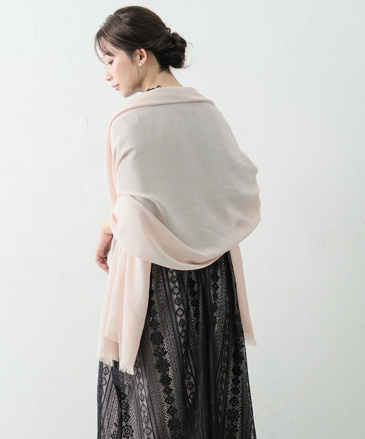肩を優しく包み込むふんわり柔らかな雰囲気の大判ショール。