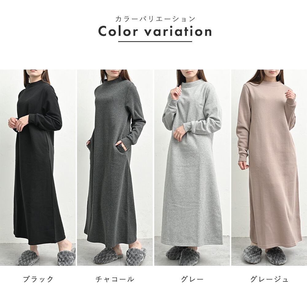 ワンピース 裏起毛 パジャマ ワンピース ルームウェア 部屋着 ワンマイルウェア レディース ロング マキシ 秋 冬 カジュアル ゆったり 楽ちん かわいい 黒 グレー ベージュ チャコール 裏起毛 ワンピース ルームウェア パジャマ レディース 秋 冬 マタニティ 暖かい 長袖 ロング マキシワンピース モックネック 部屋着 寝巻き ゆったり おしゃれ かわいい おでかけ ワンマイル ギフト 贈り物 プレゼント ab8330