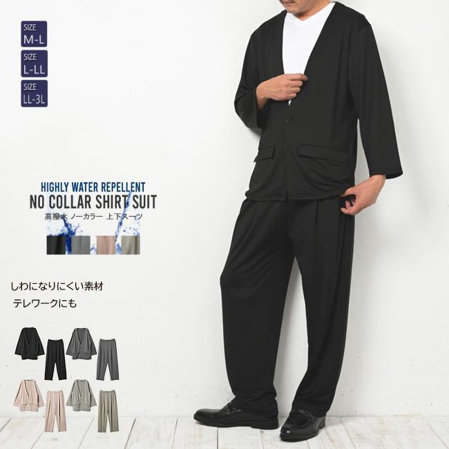 ファッションスーツ メンズ カジュアルスーツ 高撥水 ノーカラージャケット 上下セットhw1004 在宅ワークスーツ オールシーズン(春夏秋冬)