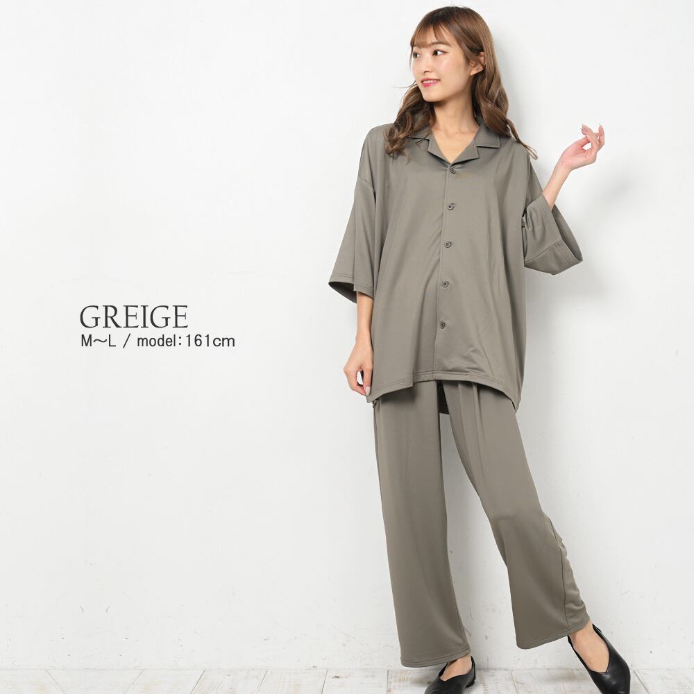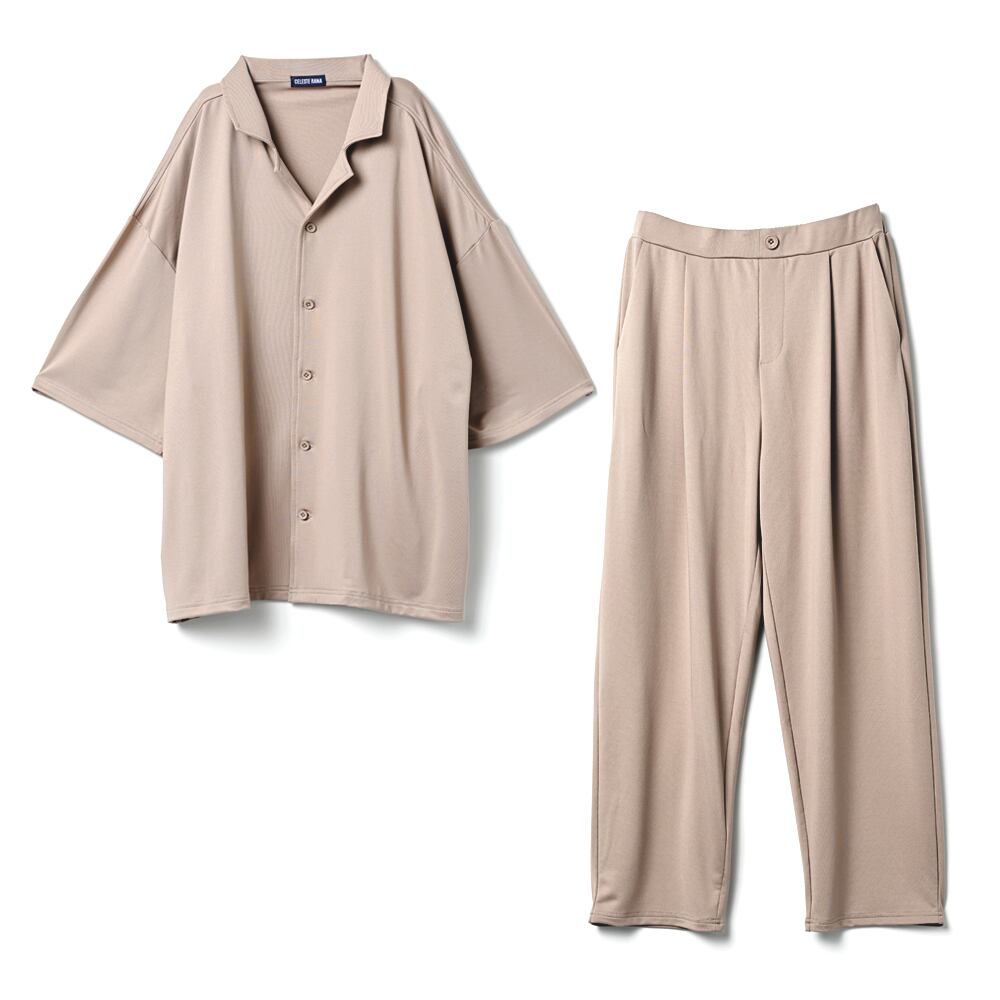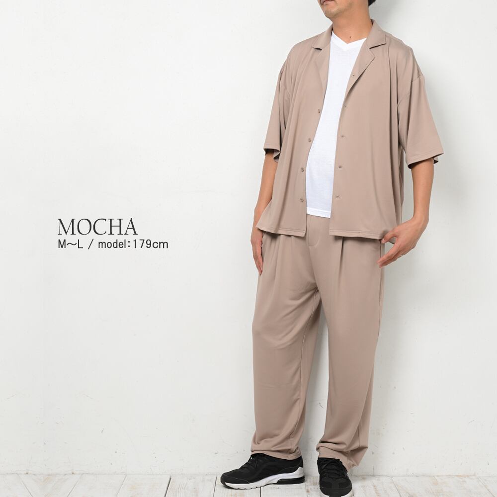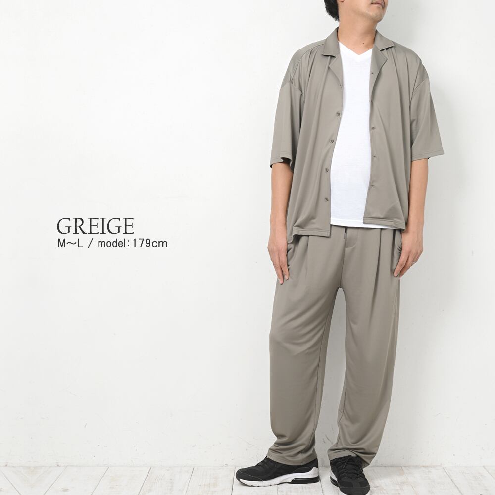 【商品名】高撥水オープンカラーシャツセットアップ(男女兼用) セットアップ ストレッチ オープンカラーシャツ 高撥水 撥水 男女兼用 メンズ レディース ウィメンズ フロントボタン バックゴムウエスト 通気性 薄手 柔らか ゆったり シンプルリラクシー 無地 春 夏 オールシーズン