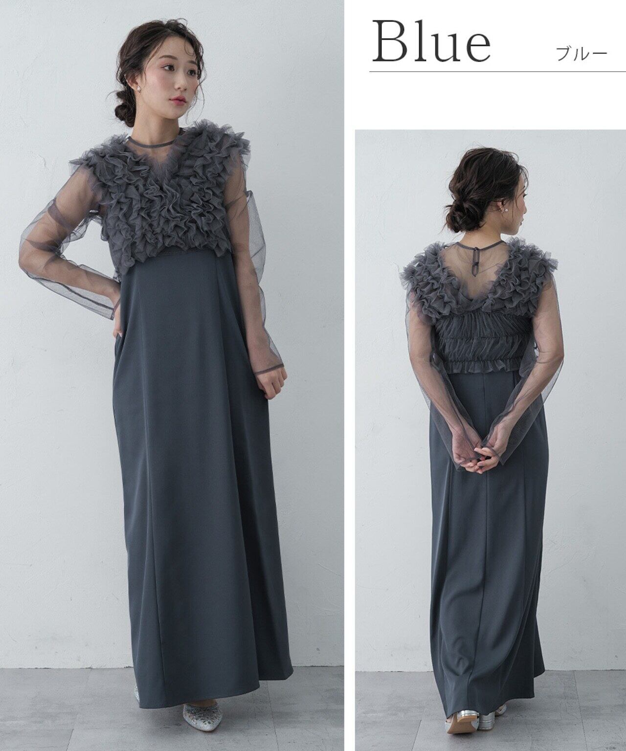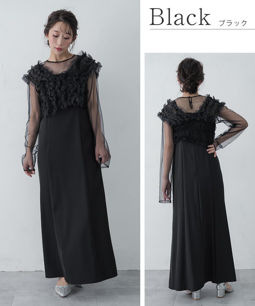 結婚式 ドレス パーティードレス ボレロ トップス 3点セット オケージョンドレス ワンピース 重ね着 レディース 秋 オケージョン チュール 体型隠し 結婚式ドレス お呼ばれ 袖あり 長袖 ロング 大人可愛い シアー S M L as913 AZU