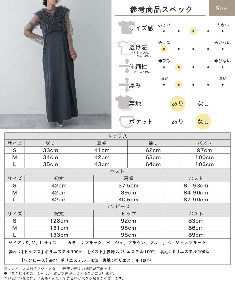 【2wayチュールベスト】【キャミワンピース】【シアートップス】の3ピースセット。