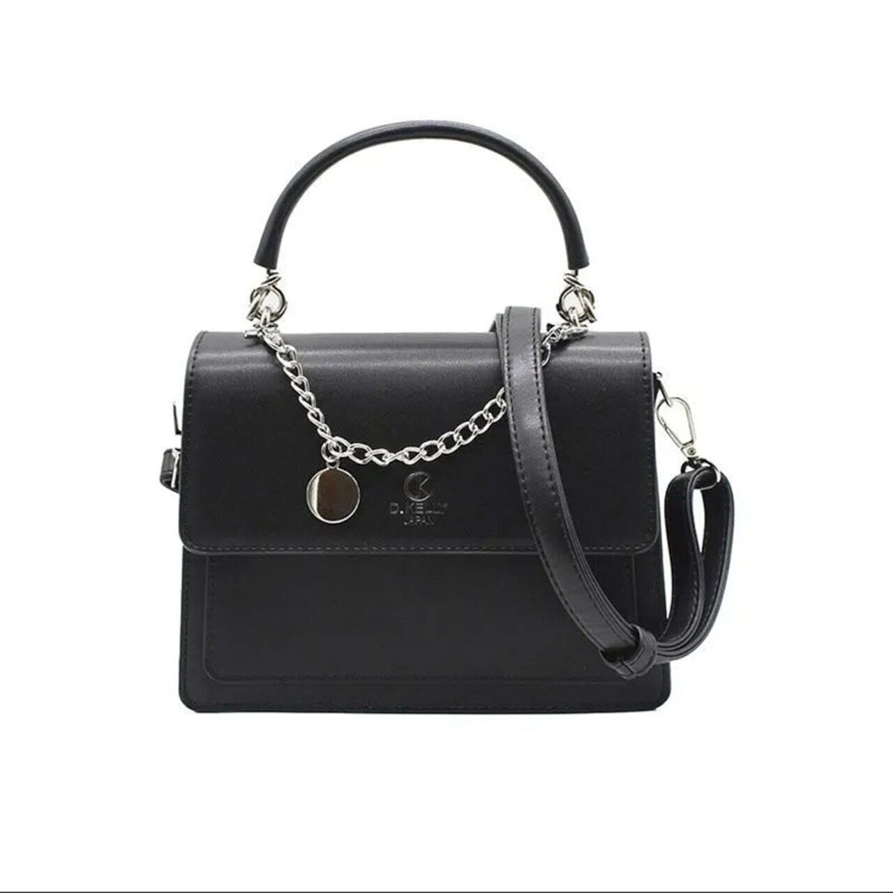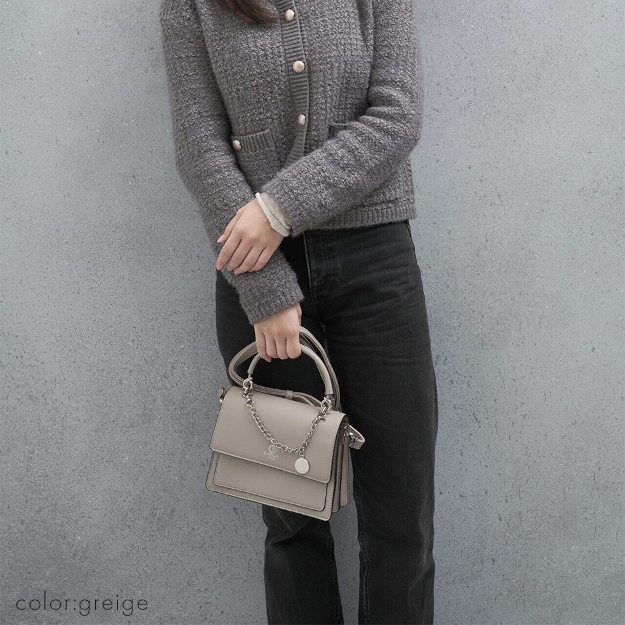 取り外し可能なチェーンを外してミニマルなスタイルに変更が可能で高級感のあるフェイクレザーだから雨の日でも気にせず使えます。