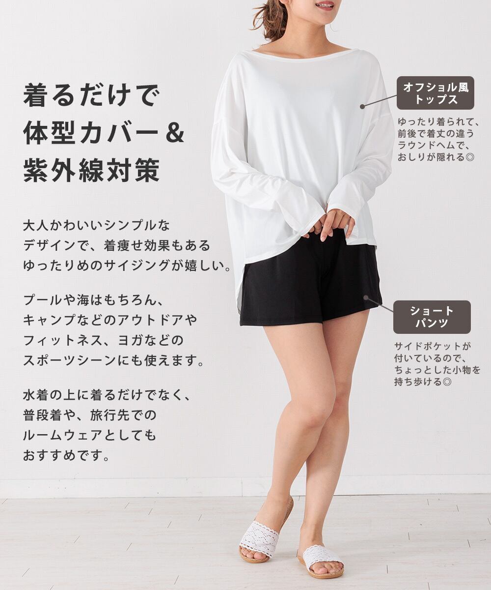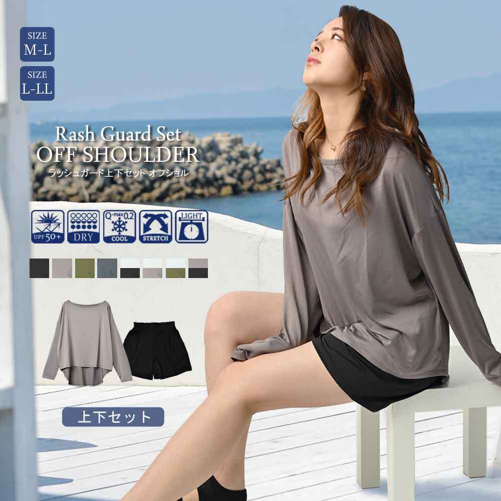 ラッシュガード レディース 上下セット UVカット 接触冷感 体型カバー フードなし 上下 セット 長袖 水着 おしゃれ 春 夏 秋 紫外線対策 吸水 速乾 軽量 トップス ショートパンツ 無地 水陸両用 薄手 シンプル スポーツウェア 白 黒 MORE AUNI SA8260