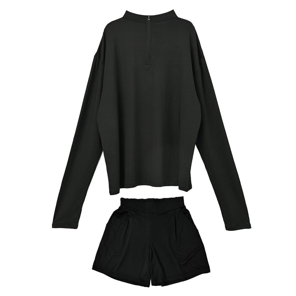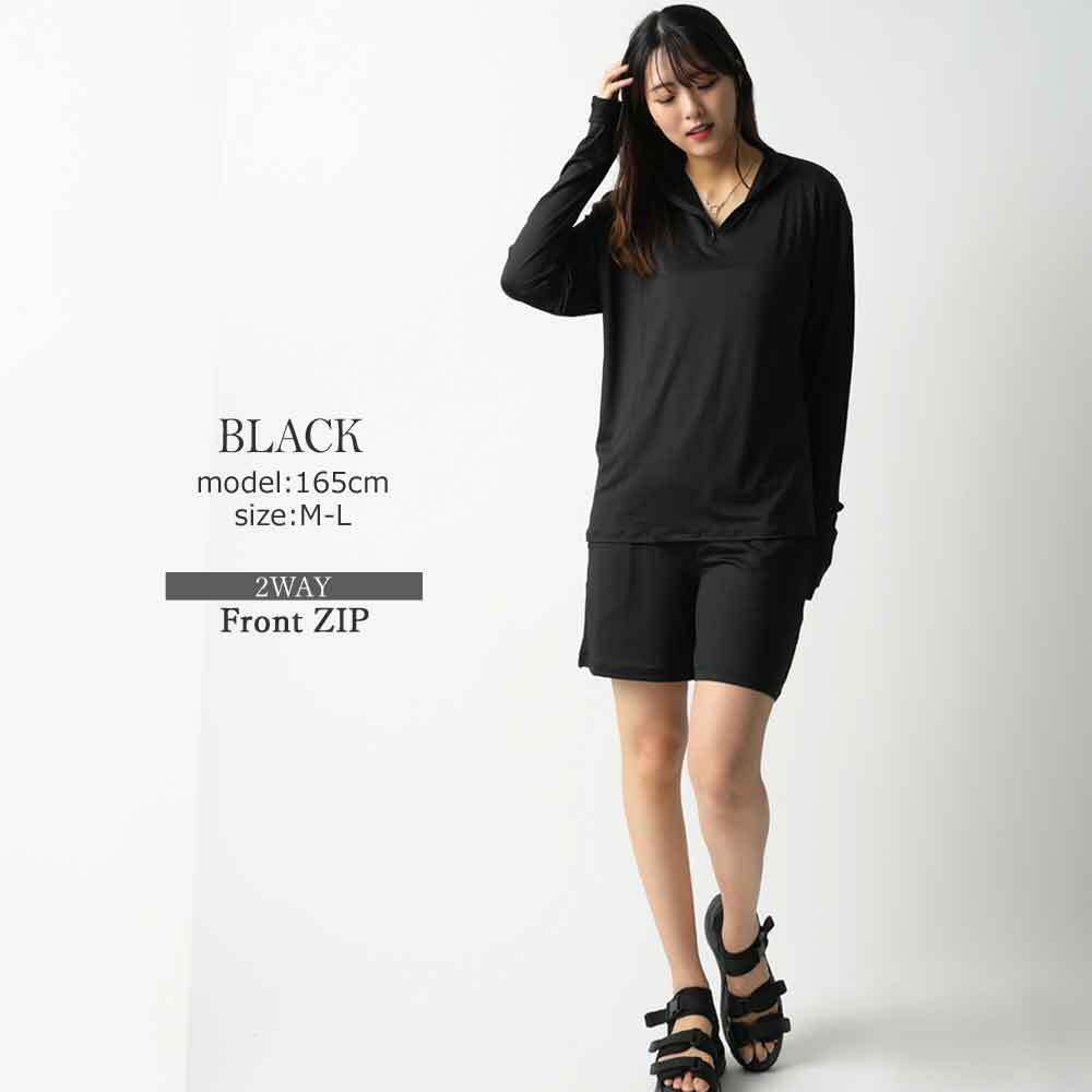 ラッシュガード レディース 長袖 上下セット UPF50+ 接触冷感 水陸両用 おしゃれ かわいい 日焼け防止 ショートパンツ 2点セットアップ ゆったり 前後 2WAY 薄手 黒 二の腕 ヒップ 太もも カバーアップ フードなし おしゃれ 最強配送 母の日 HW8281