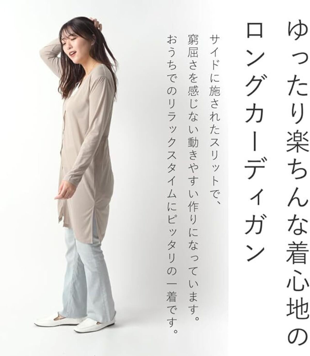 春夏の羽織りにぴったりなカジュアルなUVカットカーディガン。 透け感にこだわった生地で軽い素材なのでサッと羽織れて着心地抜群。冷房対策にもおすすめ。 程良く抜け感のある雰囲気で、羽織るだけで女性らしい印象に。
