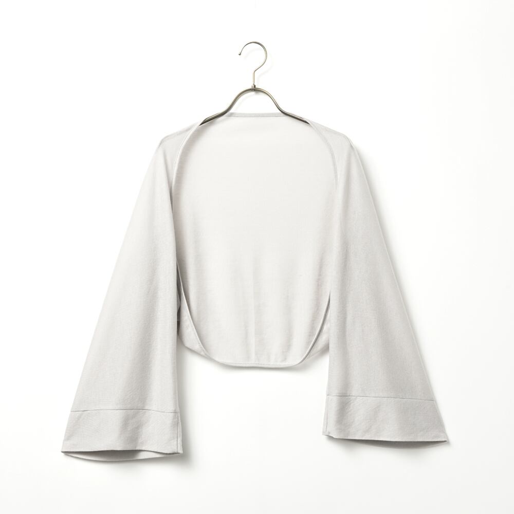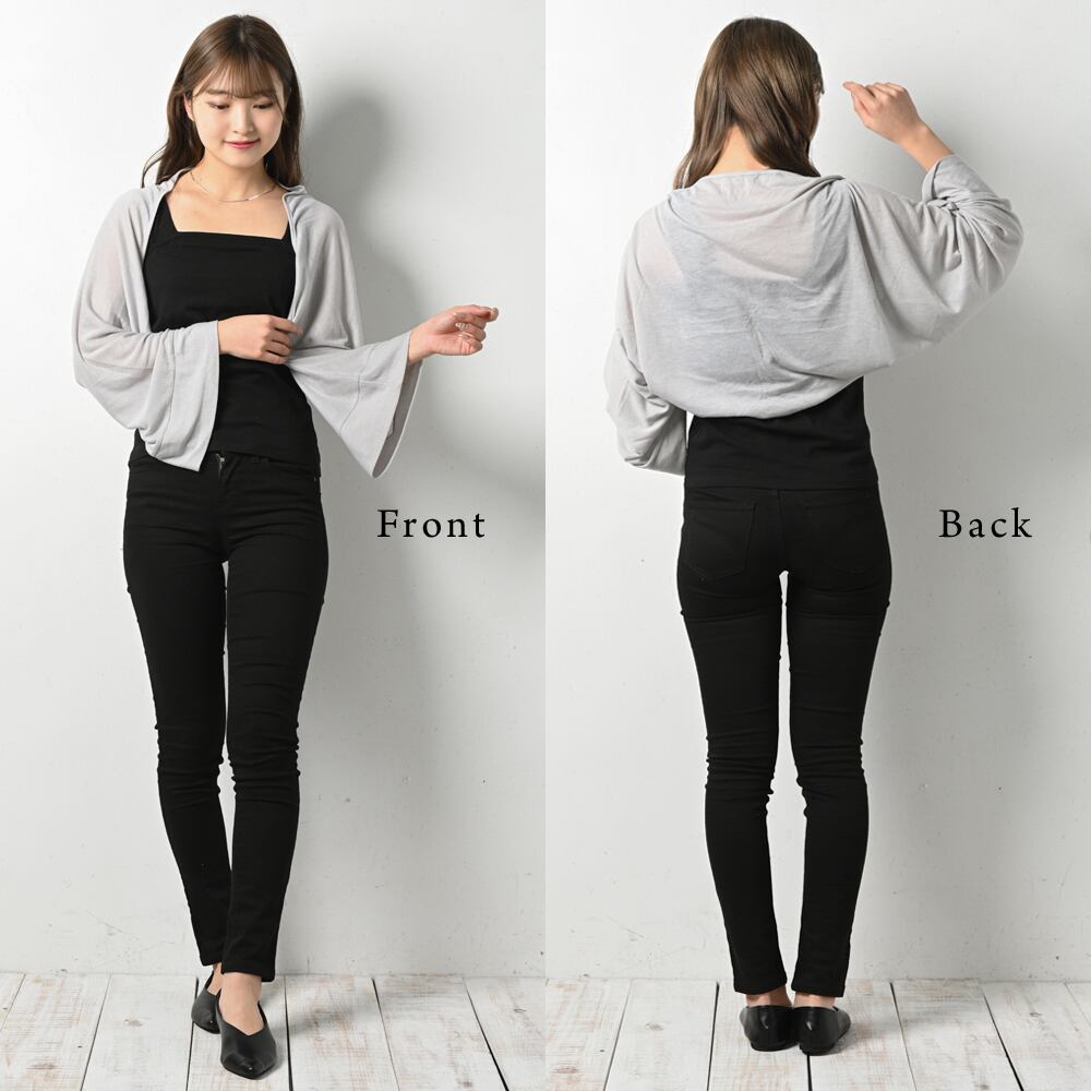 袖口が広いので服装を選ばずにさっと着やすく、透け感のあるシアー素材なので垢抜けた印象になります。