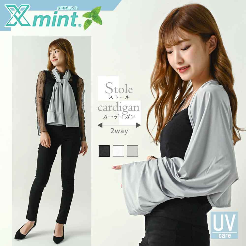 接触冷感 2way ストール カーディガン レディース トップス ひんやり UVカット UV 日焼け 薄手 紫外線 冷房 対策 クロスミント 長袖 日よけ シアー 透け感 インナー ルームウェア 羽織り 上着 春 夏 カーディガン 涼感 大きいサイズ 日焼け対策 夏用 xmint 母の日冬