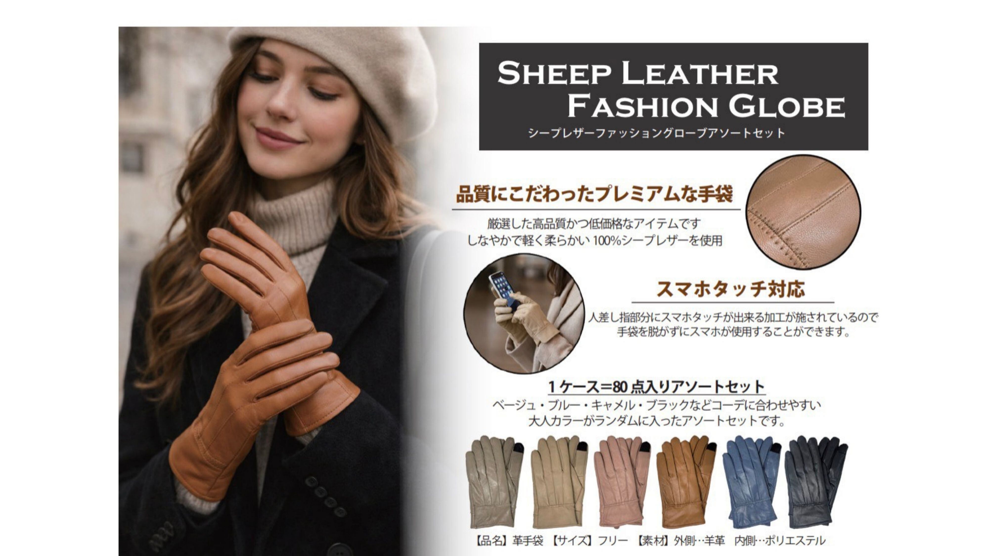 シープレザーファッショングローブ80点入りアソートセット