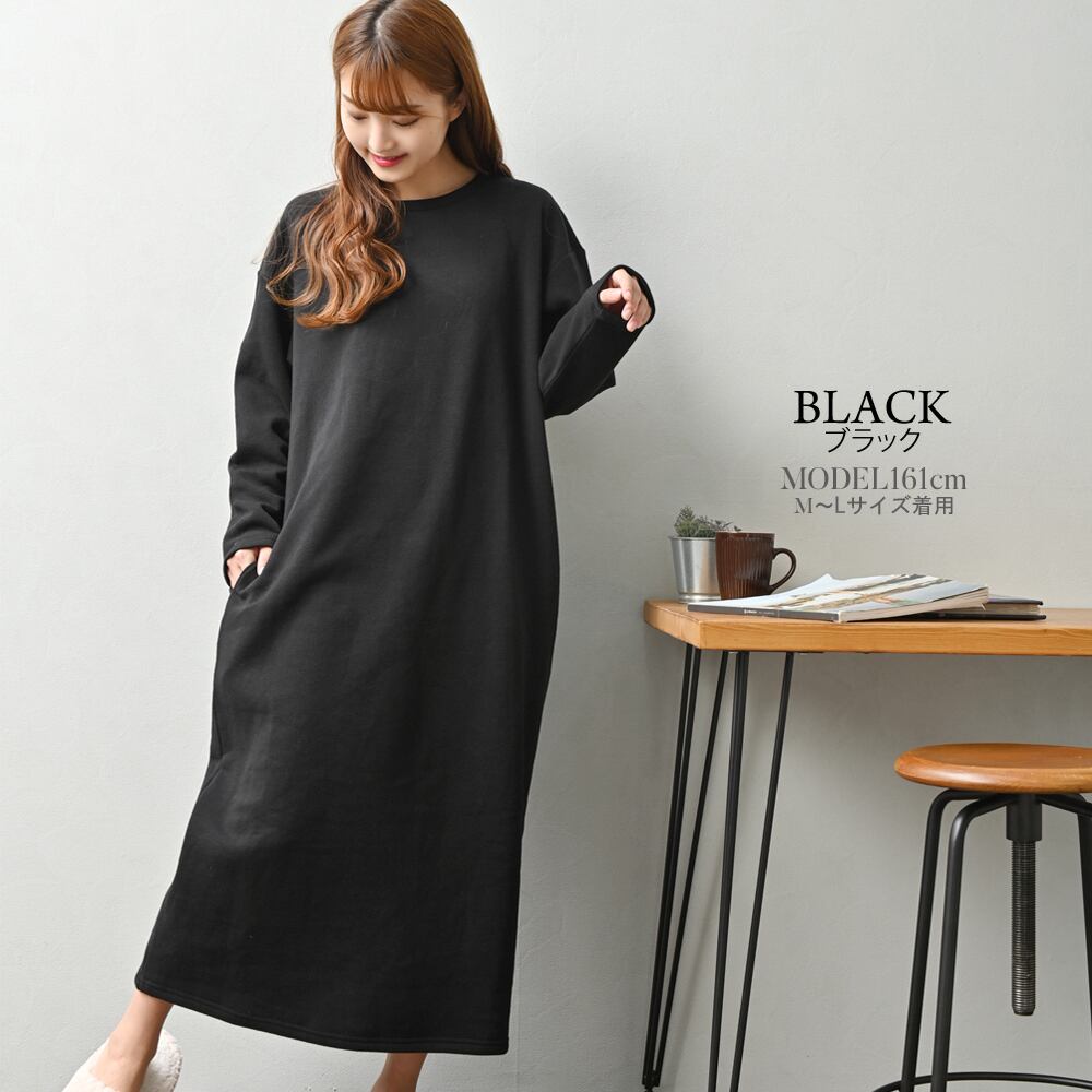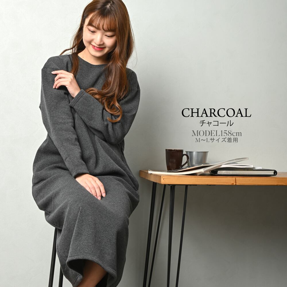 ふんわり柔らかな裏起毛素材のマキシ丈ワンピース。