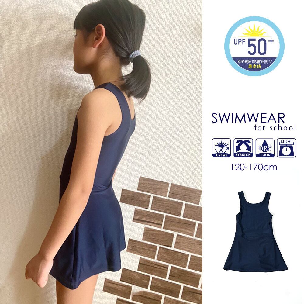 スクール水着 ワンピース 通販 水着 チュニック スイムウェア 女の子 女児 キッズ ジュニア ノースリーブ ネイビー 紺 シンプル 無地 HW8268 定番 スポーツ アウトドア