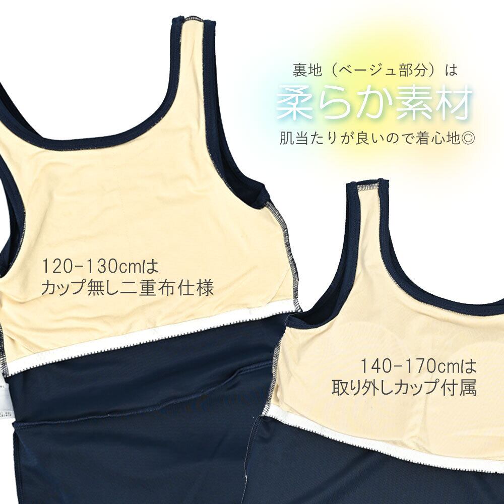 140~170cmはカップつきで安心。カップは取り外し可能なので、お洗濯もしやすい。(130cmまでは2重布仕様)