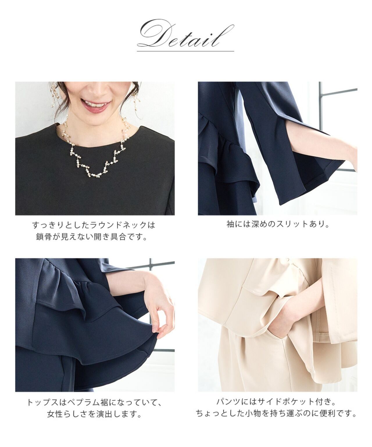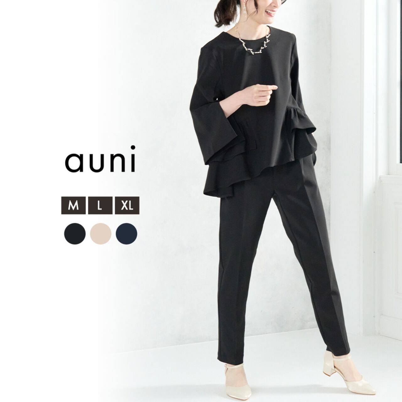 セレモニースーツ レディース ママスーツ スーツ ママ 母親 セットアップ パンツドレス セレモニー フォーマルスーツ 長袖 フリル ペプラム 大きいサイズ 上品 きれいめ 入学式 卒業式 七五三 お宮参り auni 77000048