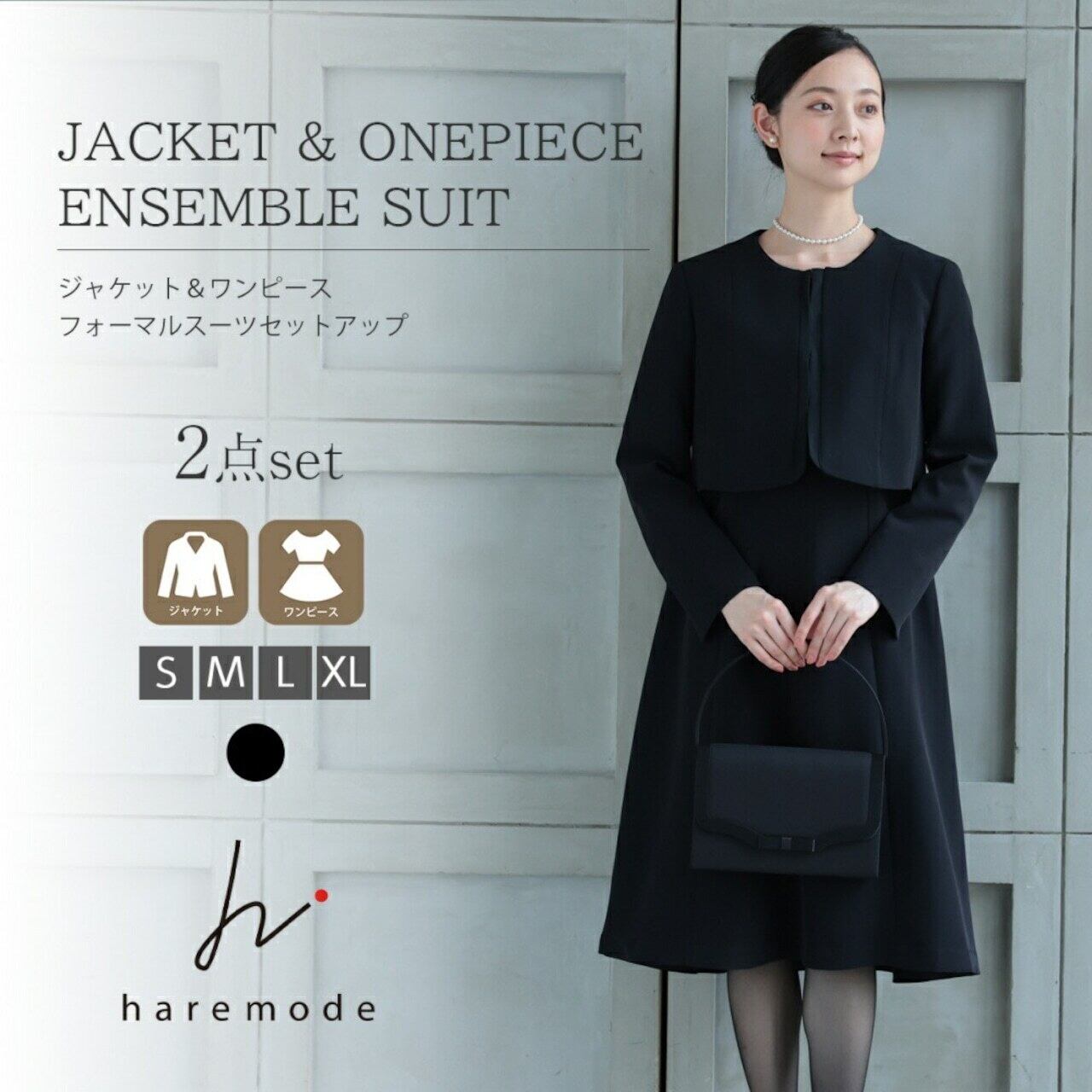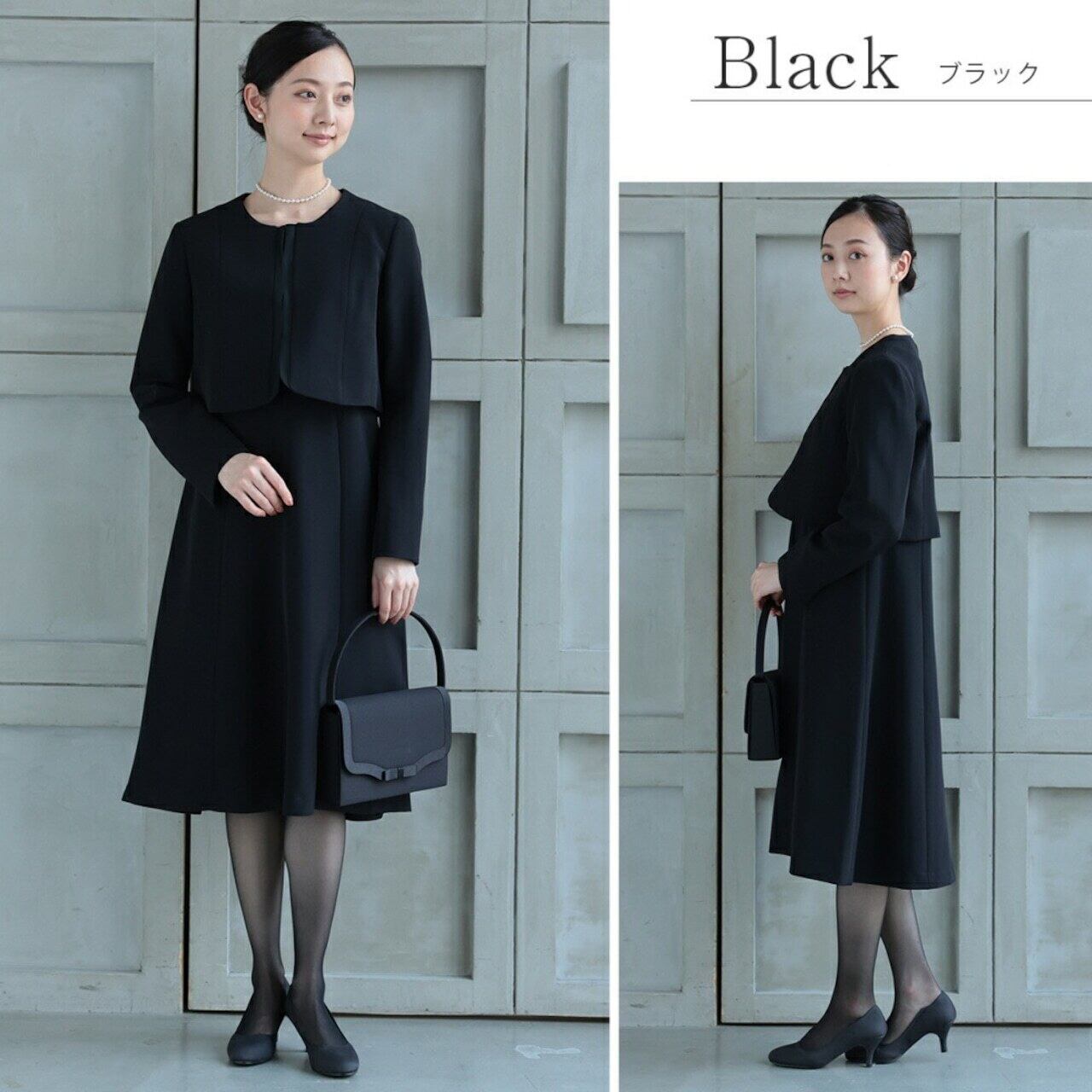 ブラックフォーマル 2点セット レディース ワンピース セットアップ ジャケット 袖あり 母親 ママ 黒 フォーマル 入卒 冠婚葬祭 受験 喪服 上品 ママスーツ 春 秋 冬 122522