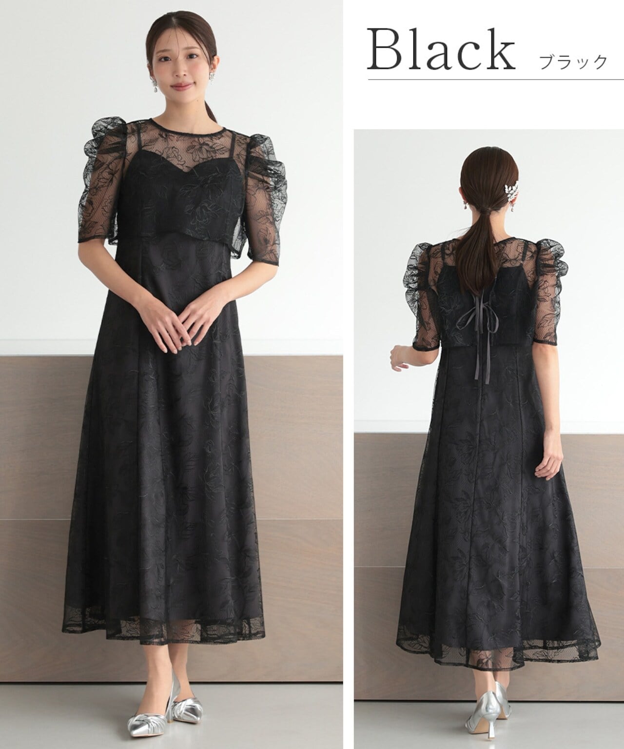 セットで着用すれば、まるで一着のロングドレスのような優美な仕上がりに。