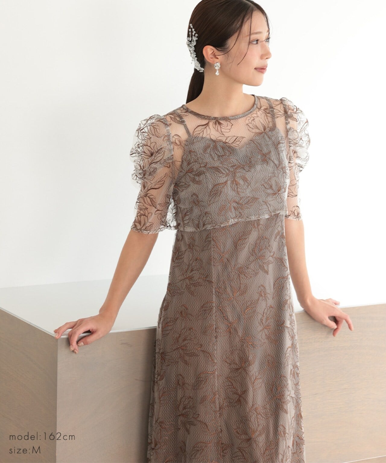 透け感が美しいショート丈のボレロトップスがセットになった、2ピースドレス。