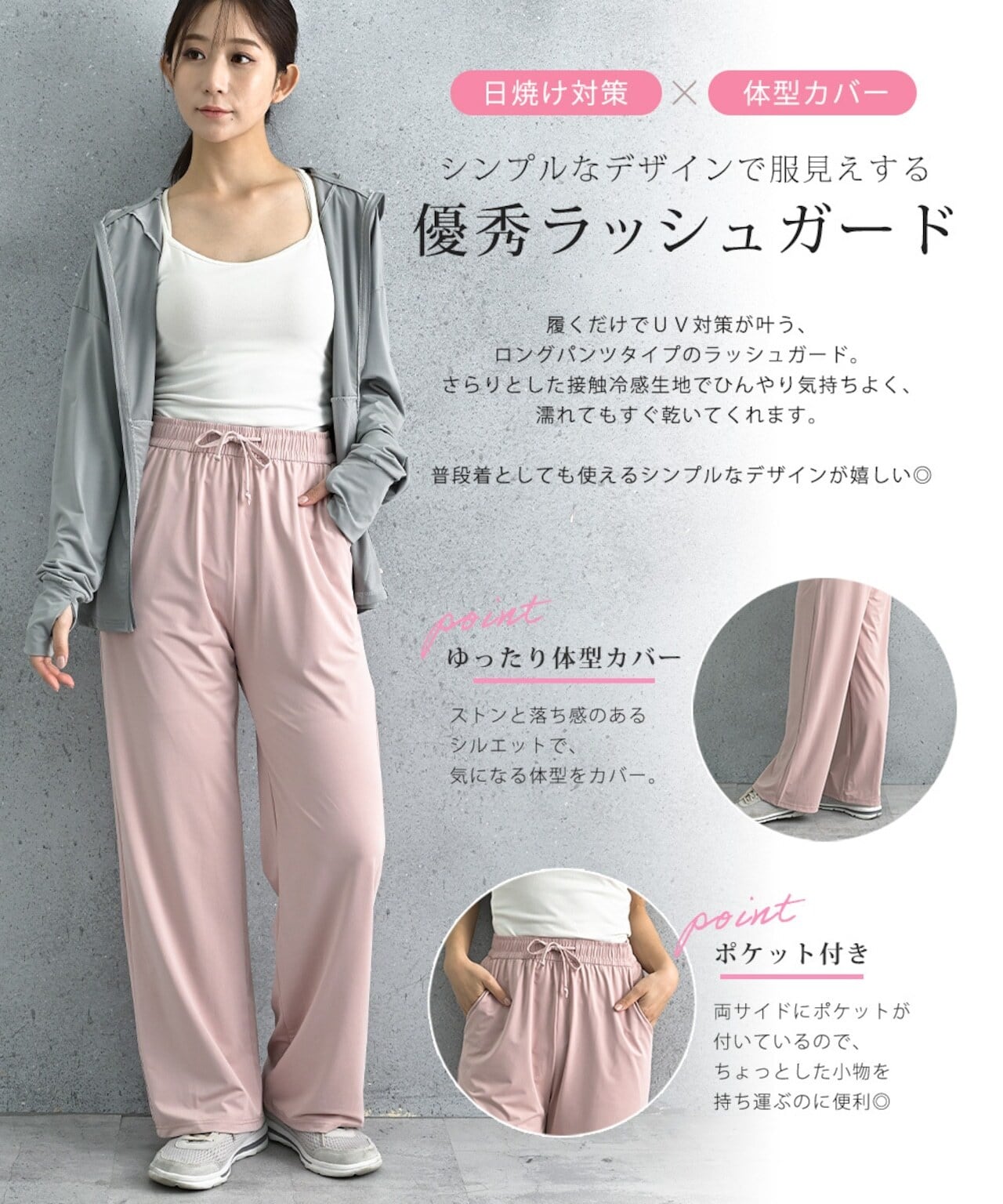 ラッシュガード レディース 日焼け防止 パンツ ロングパンツ 水陸両用 水着 体型カバー おしゃれ かわいい 接触冷感 冷感 涼感 速乾 洋服見え UPF50+ ウエストゴム 体型カバー UV対策 ストレッチ 楽ちん 黒 ベージュ ピンク ブルー J20035 AZU