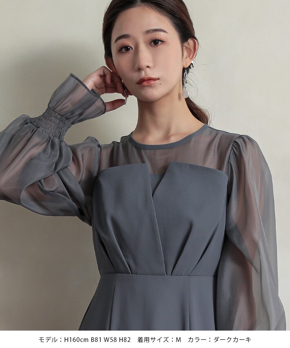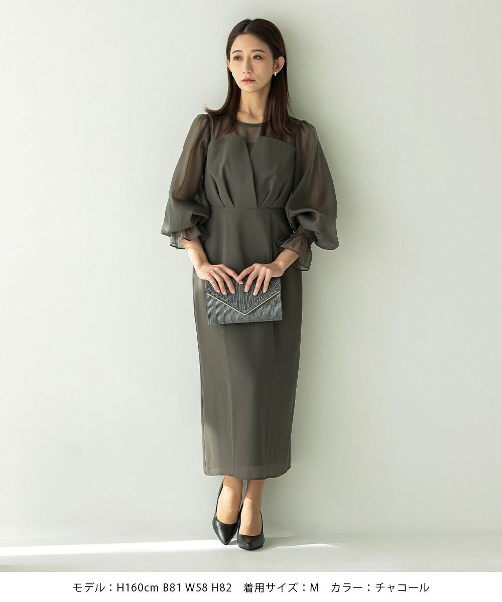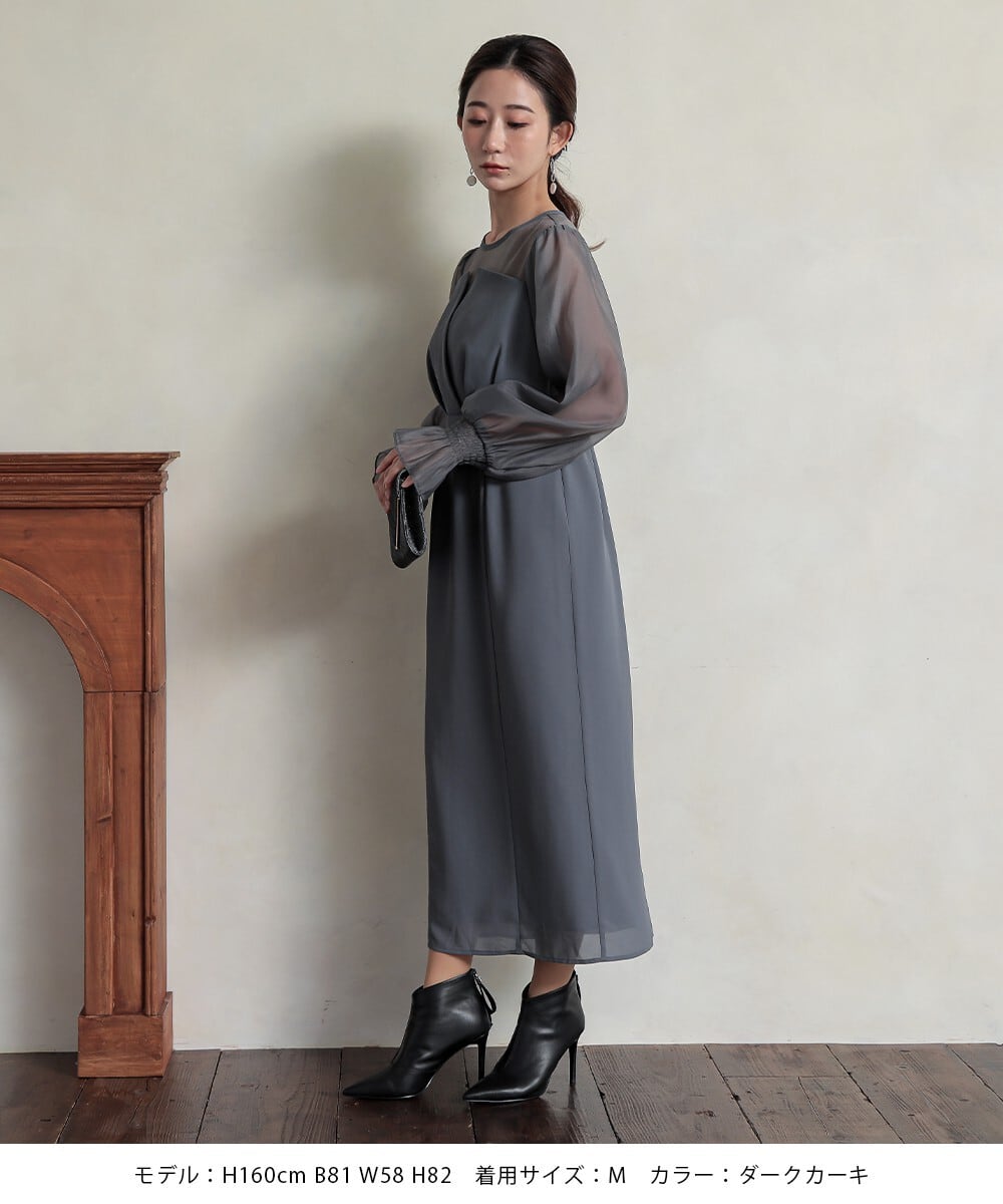 パーティードレス 結婚式 ワンピース ドレス 袖あり ロング ビスチェ風 大きいサイズ オケージョンドレス ボリューム袖 ミモレ丈 お呼ばれ 大人 おしゃれ 20代 30代 40代 S M L XL 黒 モカ チャコール grv300068 AZU